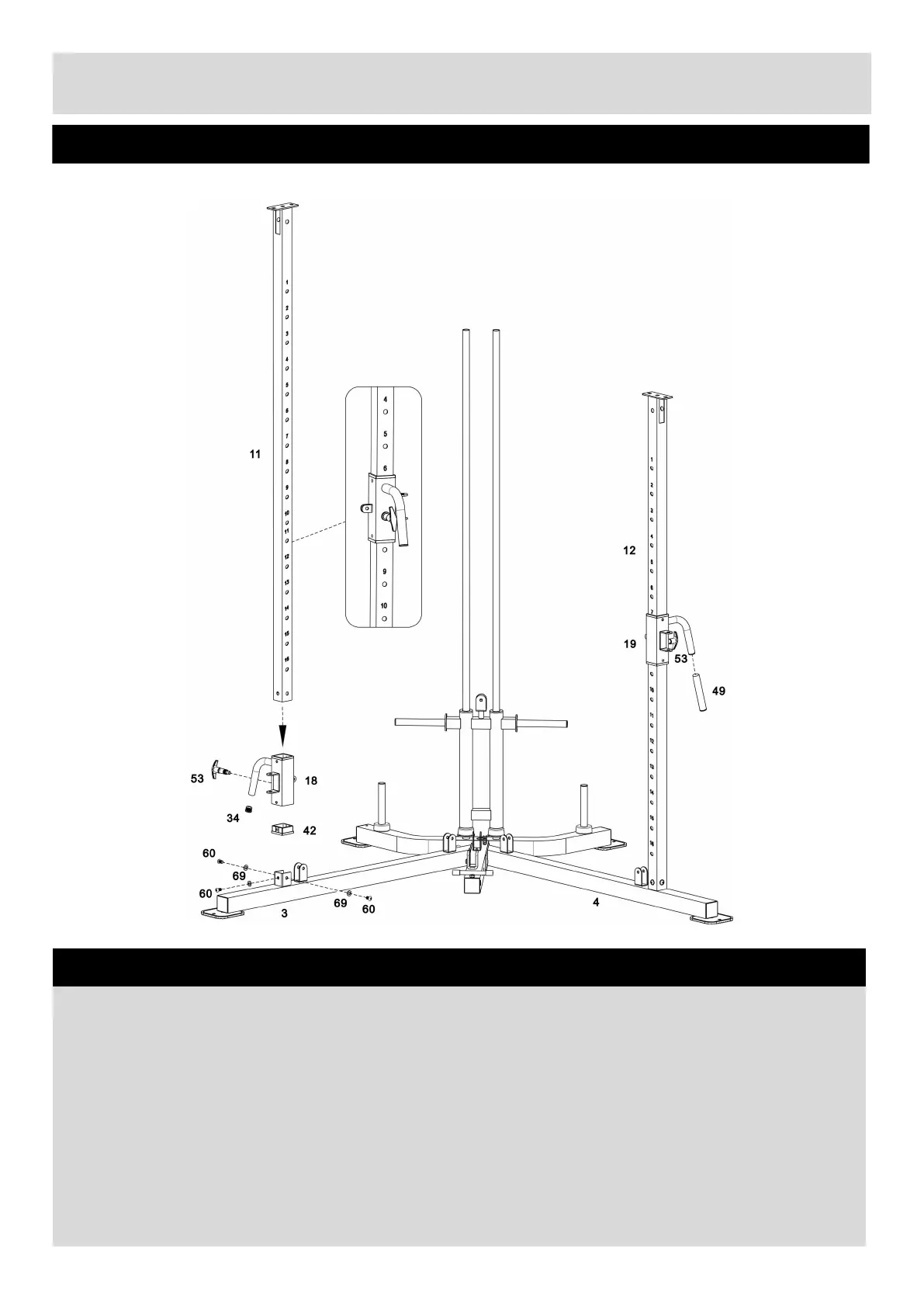 a. Put the Right Upright Support (11) through the Right Sliding Adjustment Frame (18), and secure with