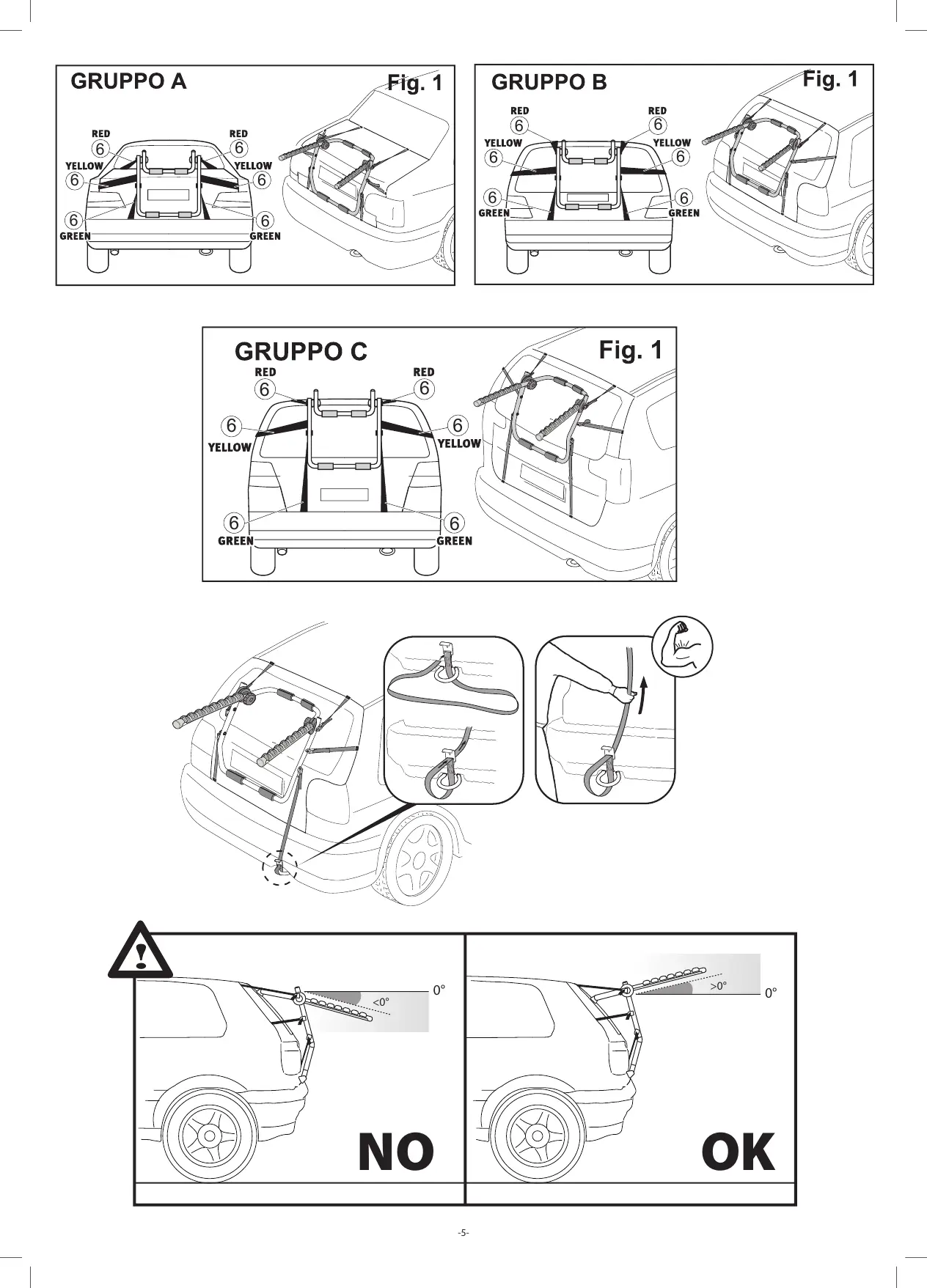 Menabo BIKI - Mounting Configuration GRUPPO A; Mounting Configuration GRUPPO B; Mounting Configuration GRUPPO C; Installation Angle Safety Check