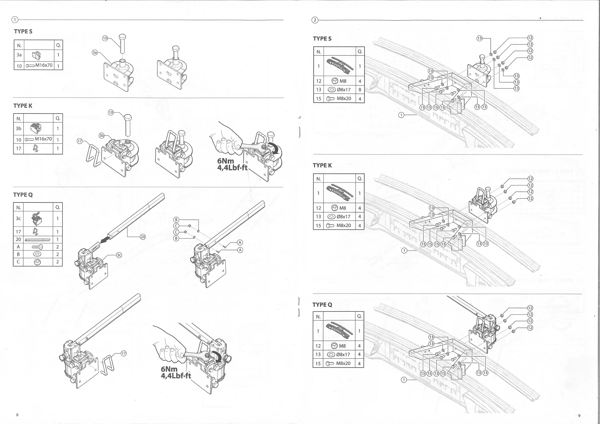 Menabo MERAK - MERAK Installation and Usage Guide; Initial Assembly, Type-Specific Steps, and Torque