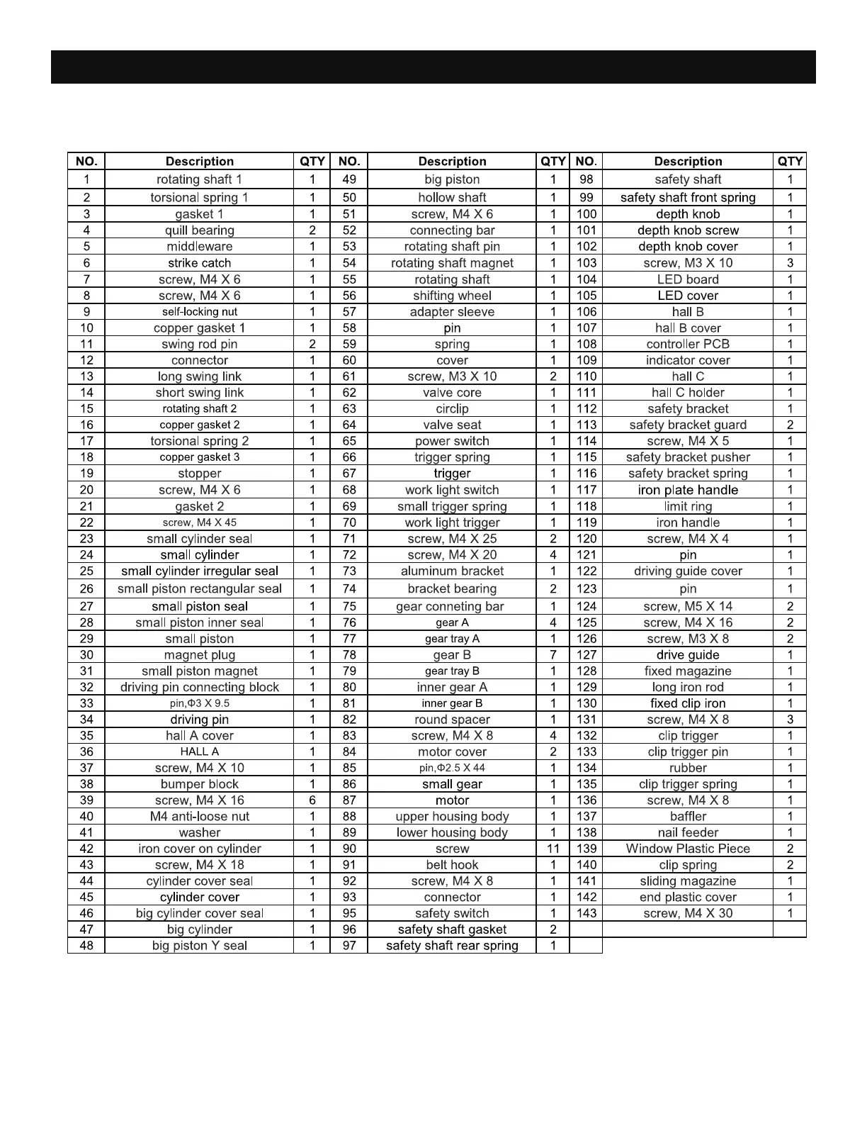 PARTS LIST