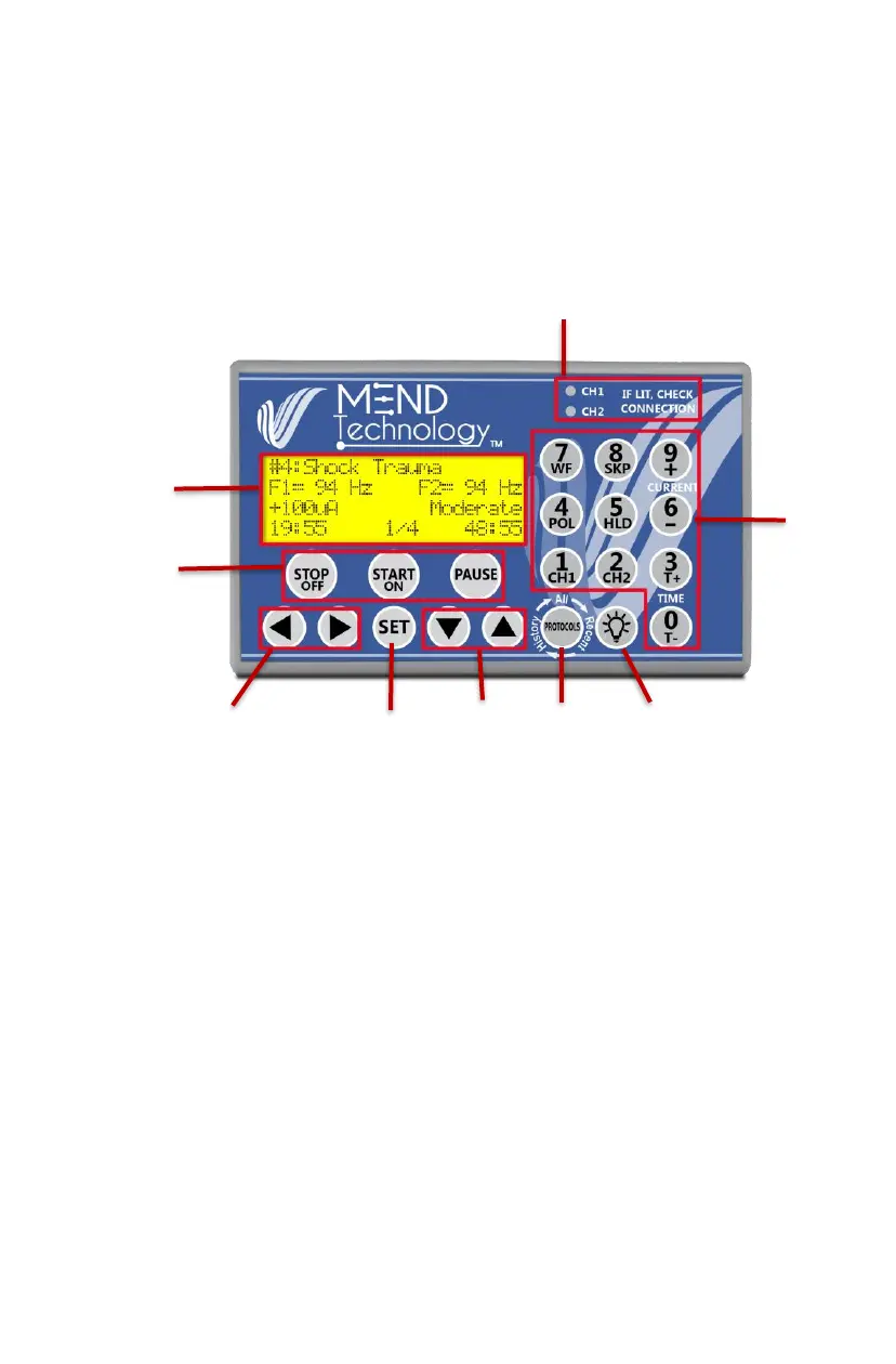 • Key START/ON to turn on the unit, or to start the selected protocol.