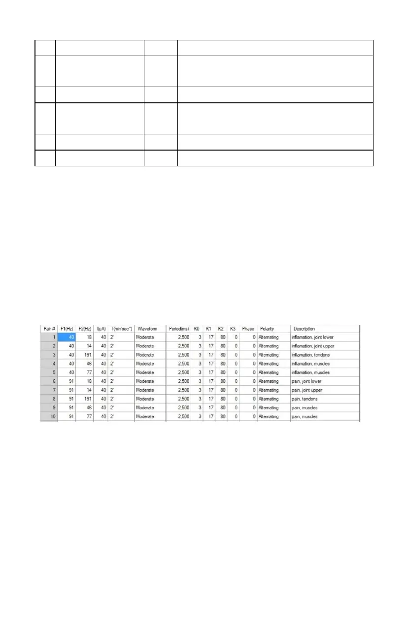 table is an example of a protocol including 10 frequency pairs. Each frequency pair