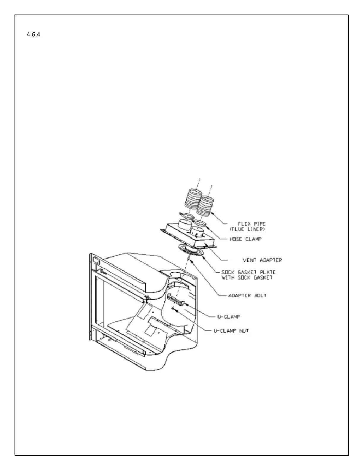 the 4” hole on firebox ceiling and Slide the Vent adapter through Sock Gasket Assembly then slide this assembly through the