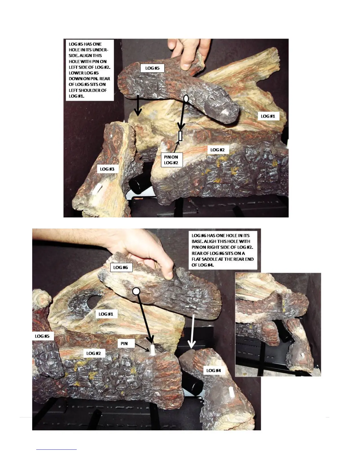Mendota FV-41 - Log Installation - Top Mid Logs; Installing Log #5 (Left Top Mid Log); Installing Log #6 (Right Top Mid Log)