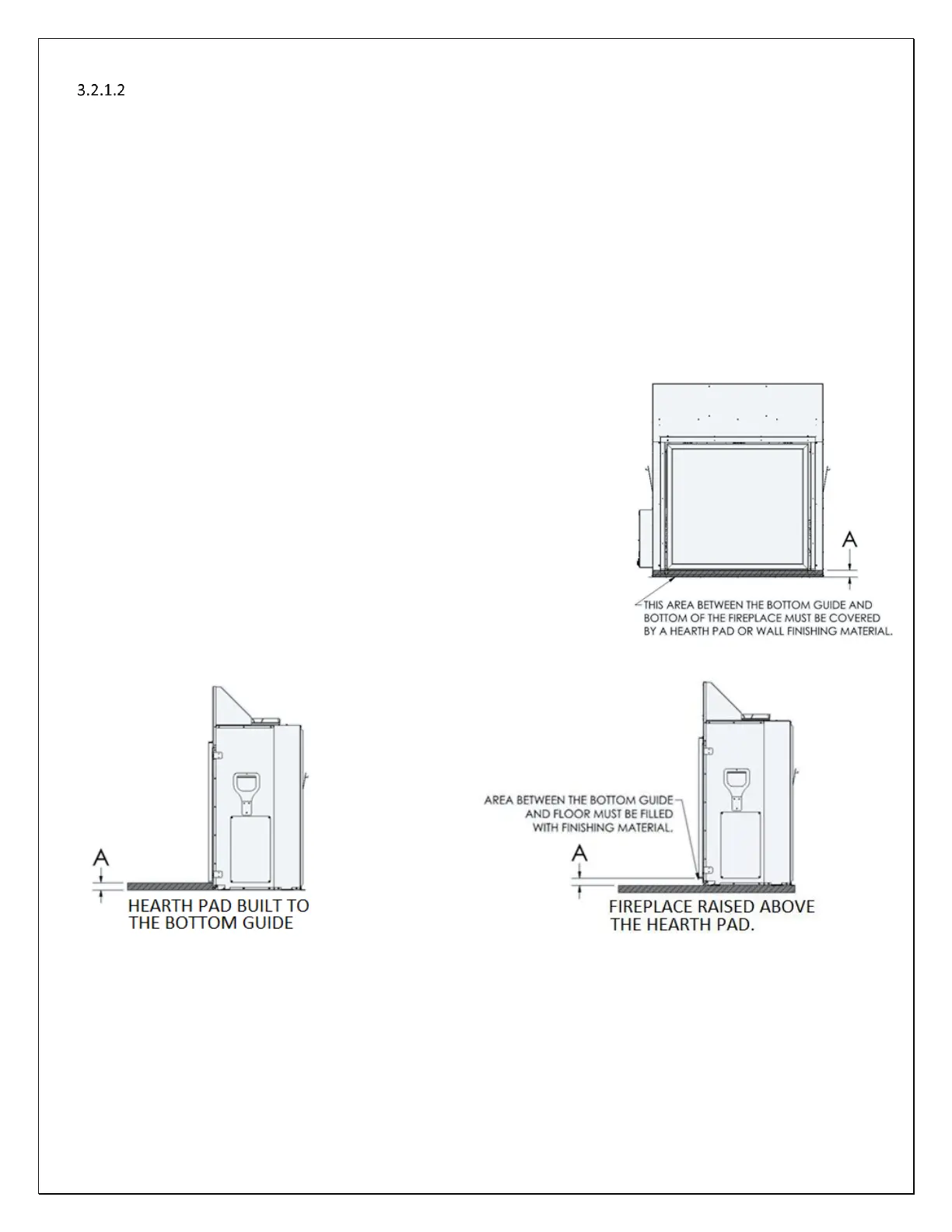 If the hearth pad being used is thicker than the dimension “A” the fireplace will need to be raised. For example, if