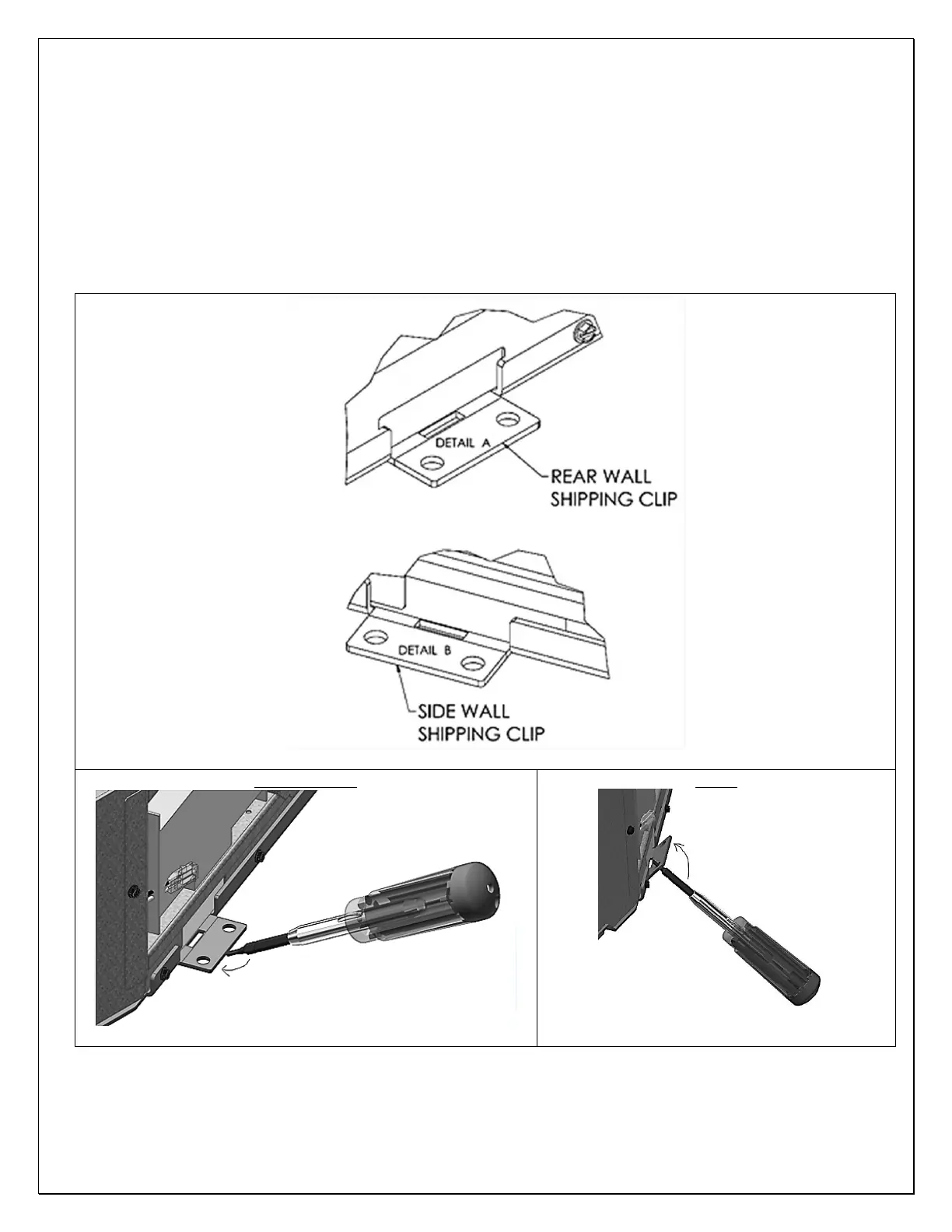 Once the unit is detached from the pallet by removing the securing lag screws that hold these shipping clips to the pallet, either