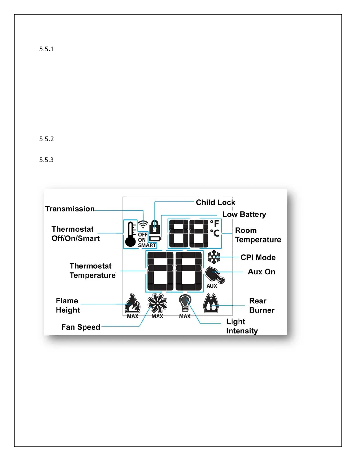 c. If the thermostat icon displays as “SMART” (Smart Thermostat), the fireplace will only ignite if the