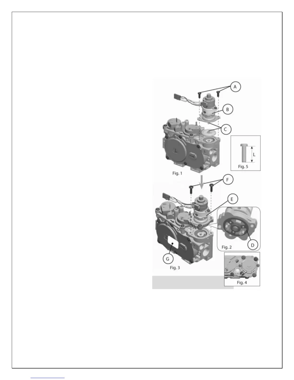 18. Figures 3 and 4: Install the new stepper motor pressure regulator assemble. Use the provided screws (F),