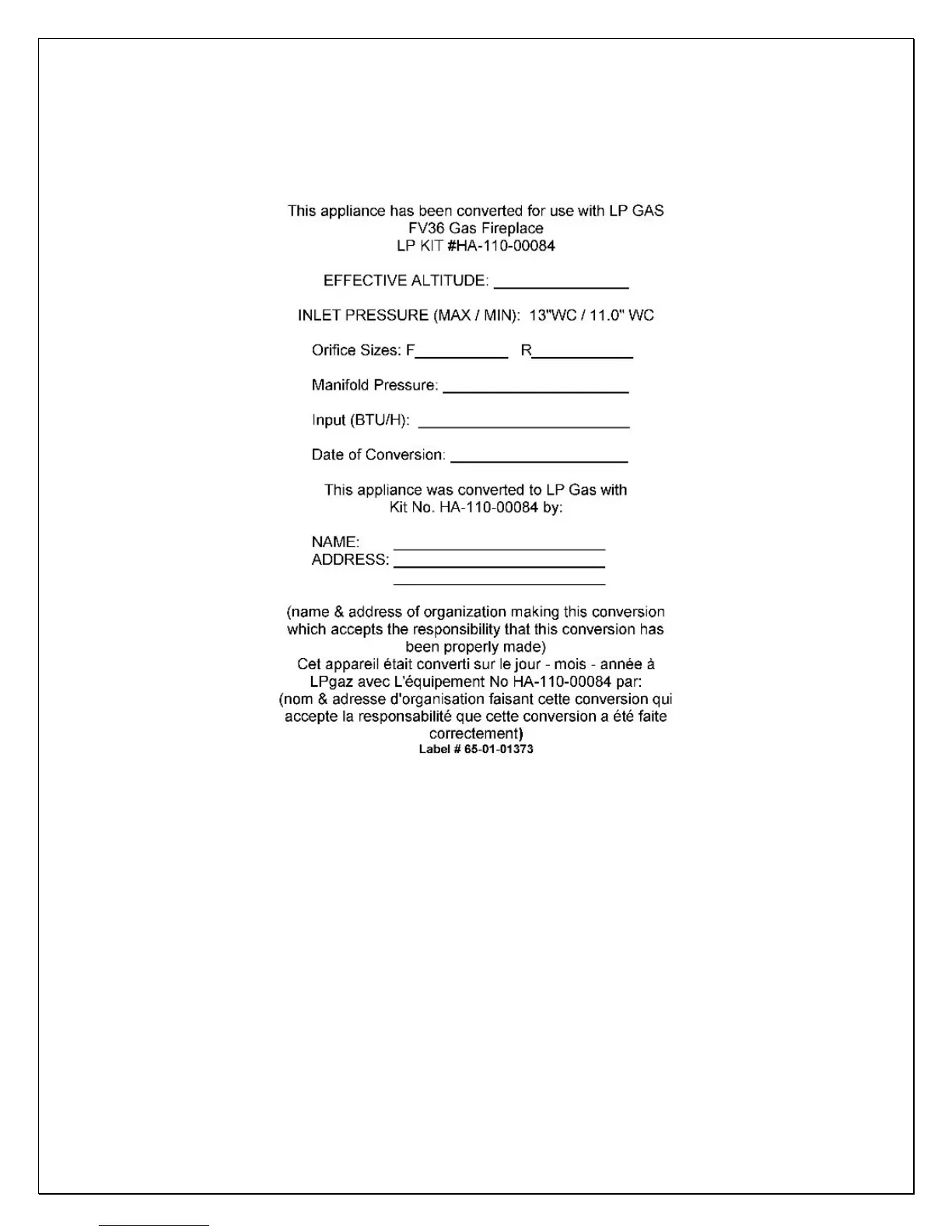 A printed informational label is included with the LP Gas Conversion Kit (as shown). Attach this label to the