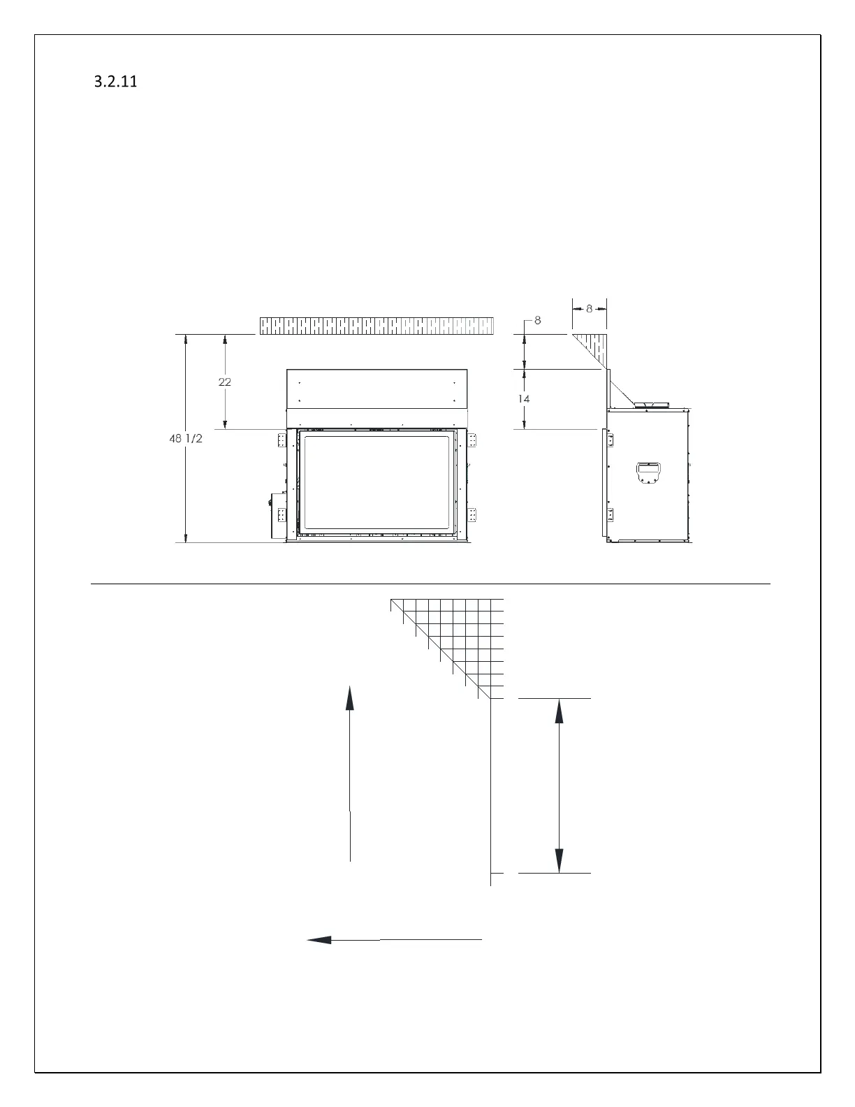 An 8” combustible mantel may be installed at a minimum of 22" above the top of the heat outlet (48-1/2” up from the floor