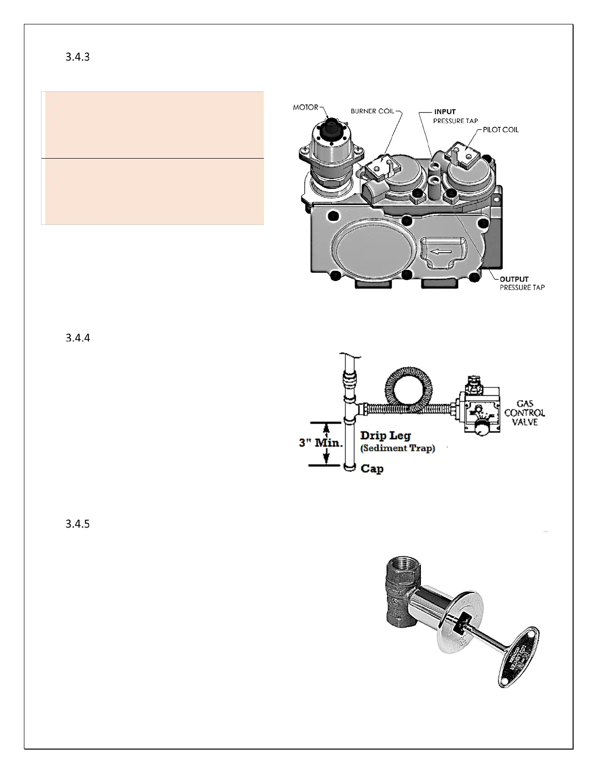Two pressure taps for checking input and output gas pressures are located on the main gas valve. A qualified installer should