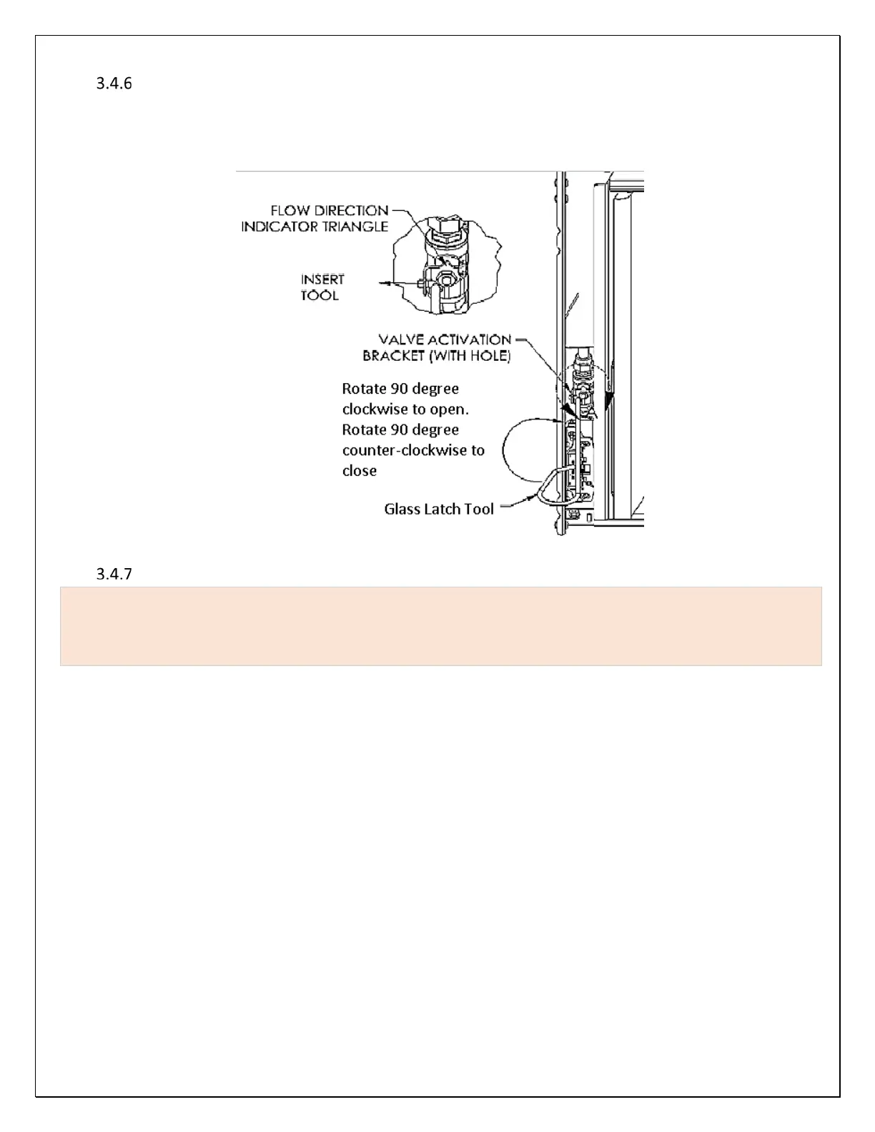 shutoff valve, insert the tip of the glass latch tool into the hole in the valve activation bracket. Rotate the tool 90-Degrees