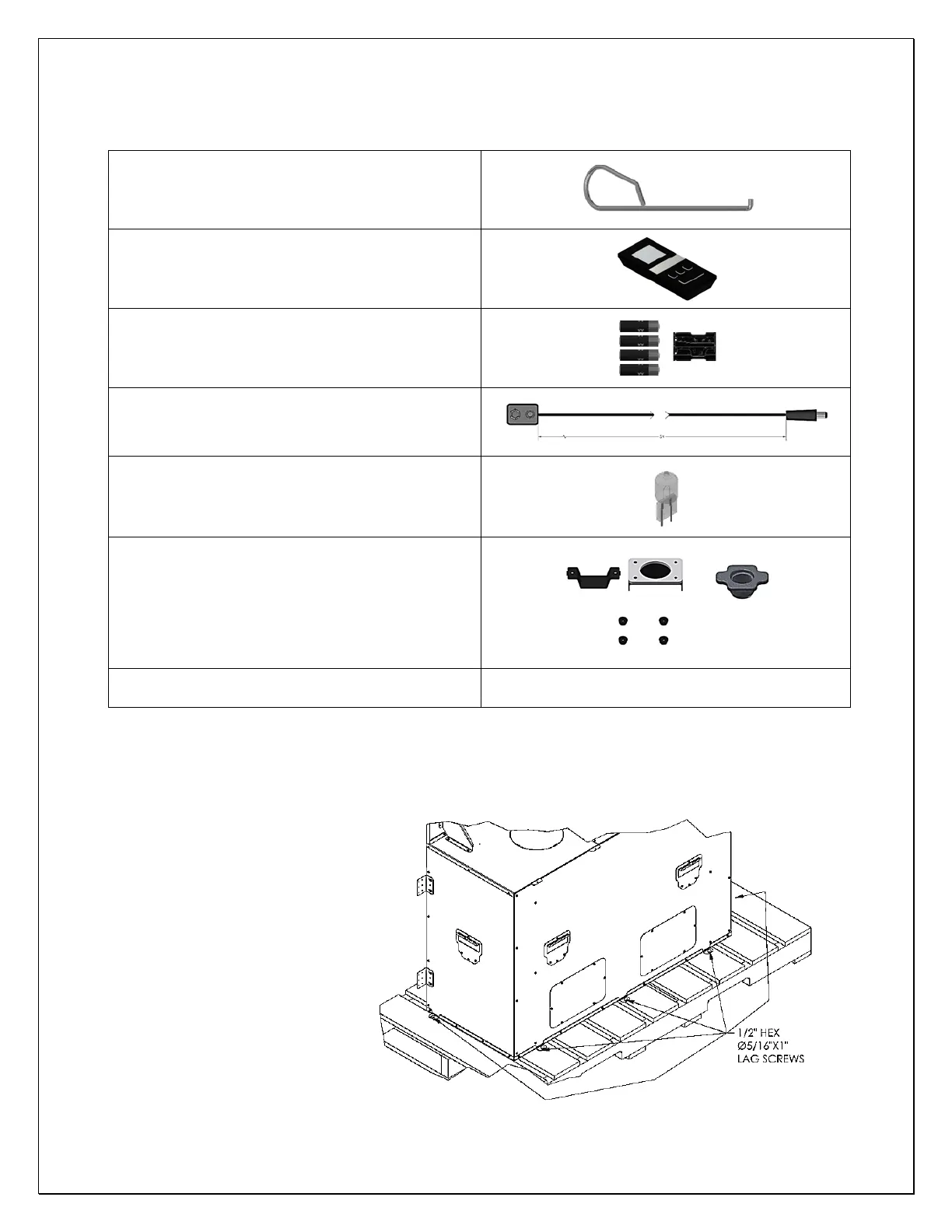 includes the items shown in the table, below. Contact Mendota Technical Service if any parts are missing.