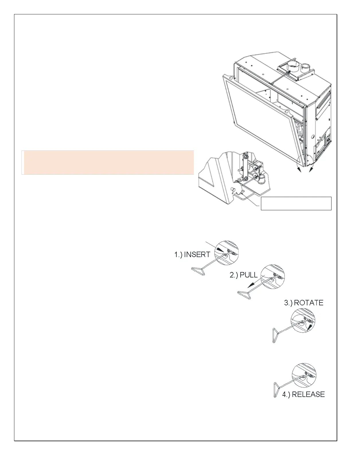 frame. Insert tool into hole in latch, pull towards you and rotate 90-