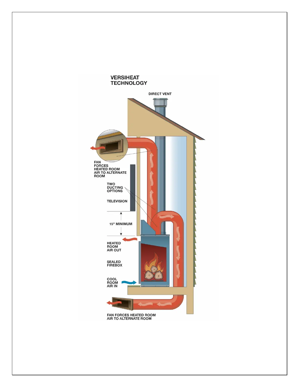 WARNING: To reduce temperatures above the fireplace for mounting a television the Versiheat system must always be on when
