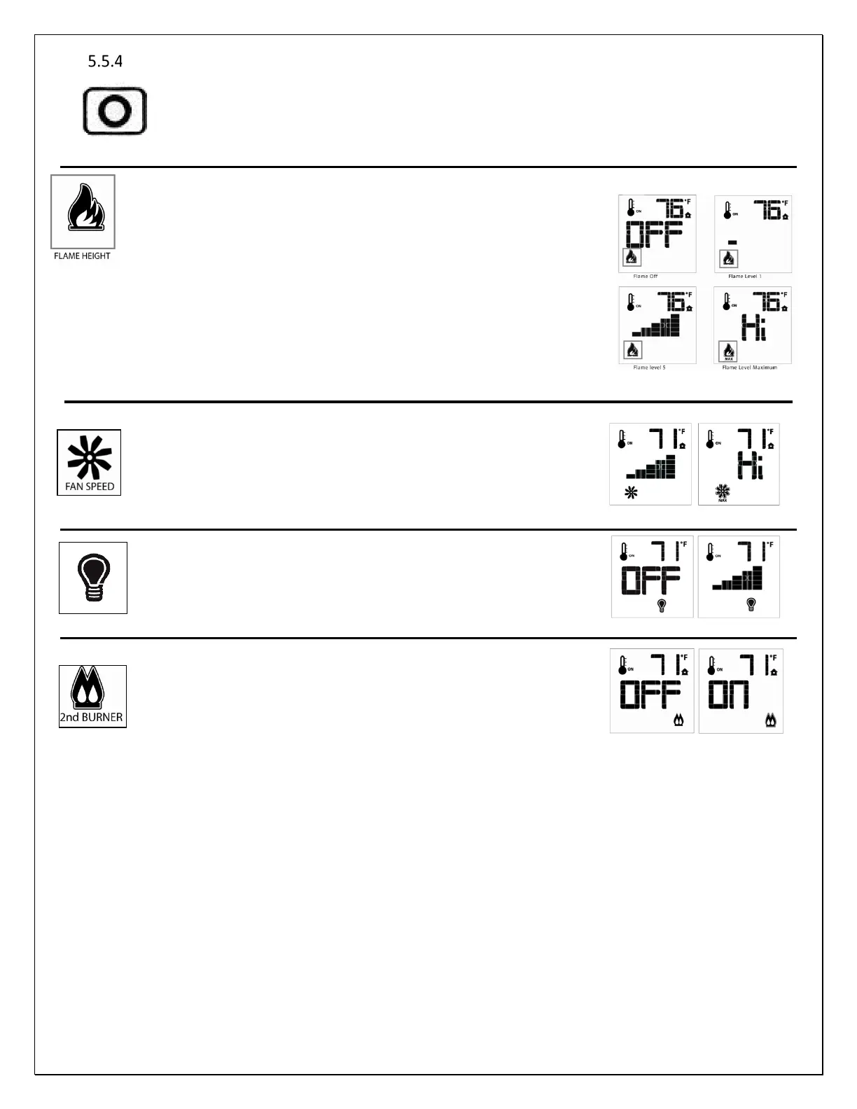 Flame Height: Six flame height levels are available. While the flame height icon is