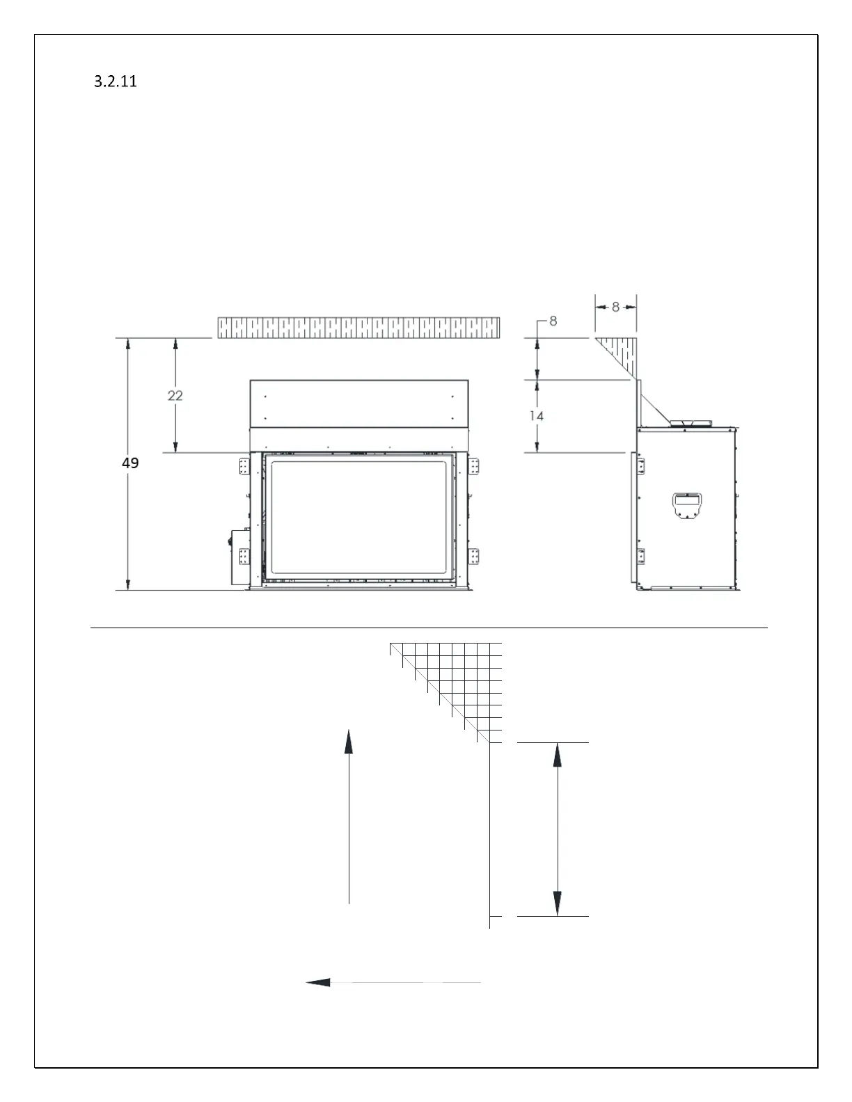 An 8” combustible mantel may be installed at a minimum of 22" above the top of the heat outlet (49” up from the floor level of