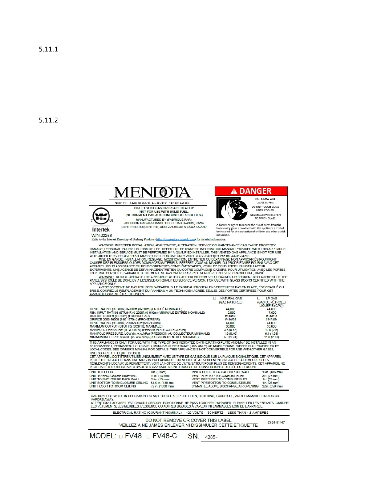 Listing label location: The listing label is located in the air gap below the bottom edge of the glass door frame. It is attached to a