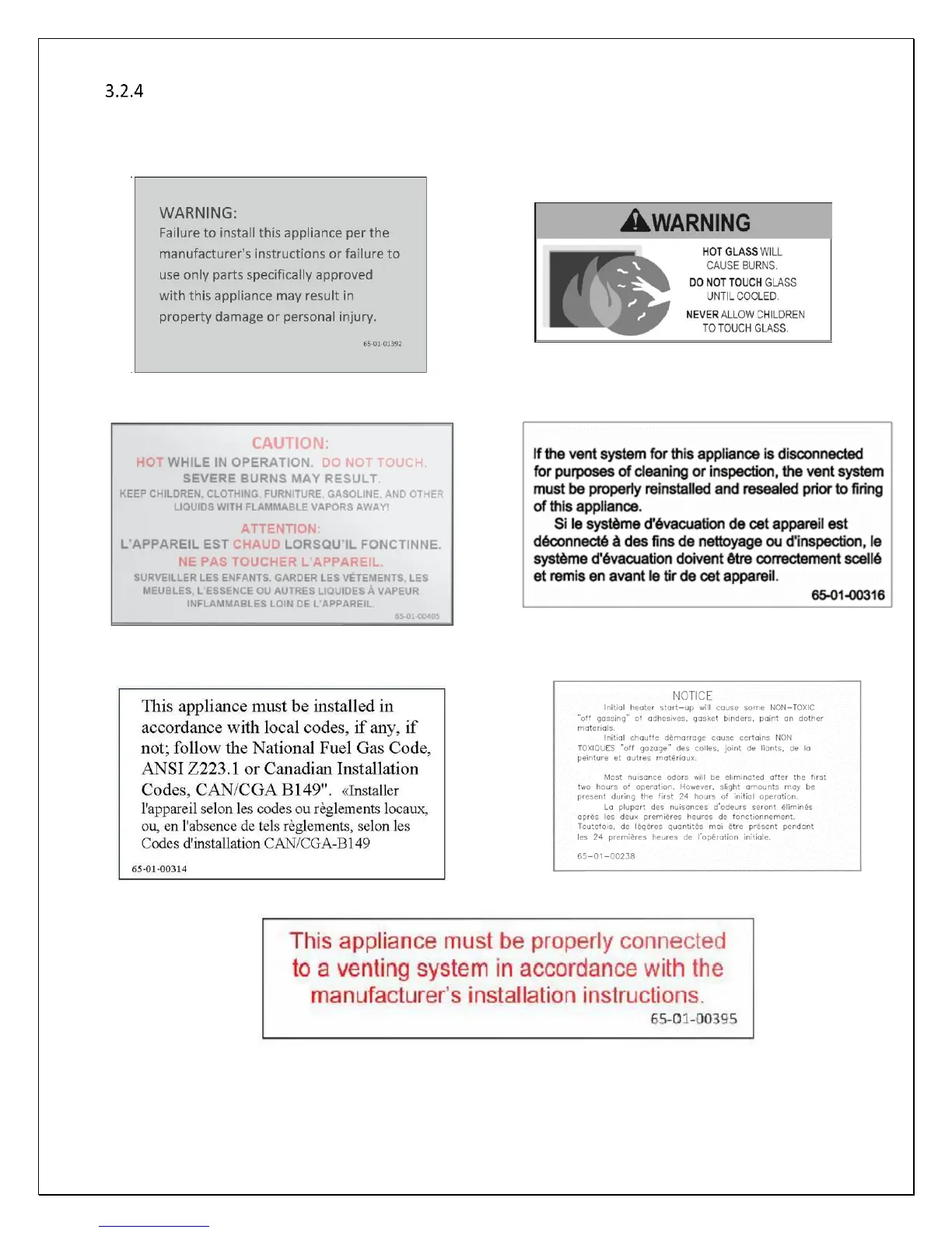 A few warnings and caution labels are attached to this appliance body and door glass as required per code to inform you of