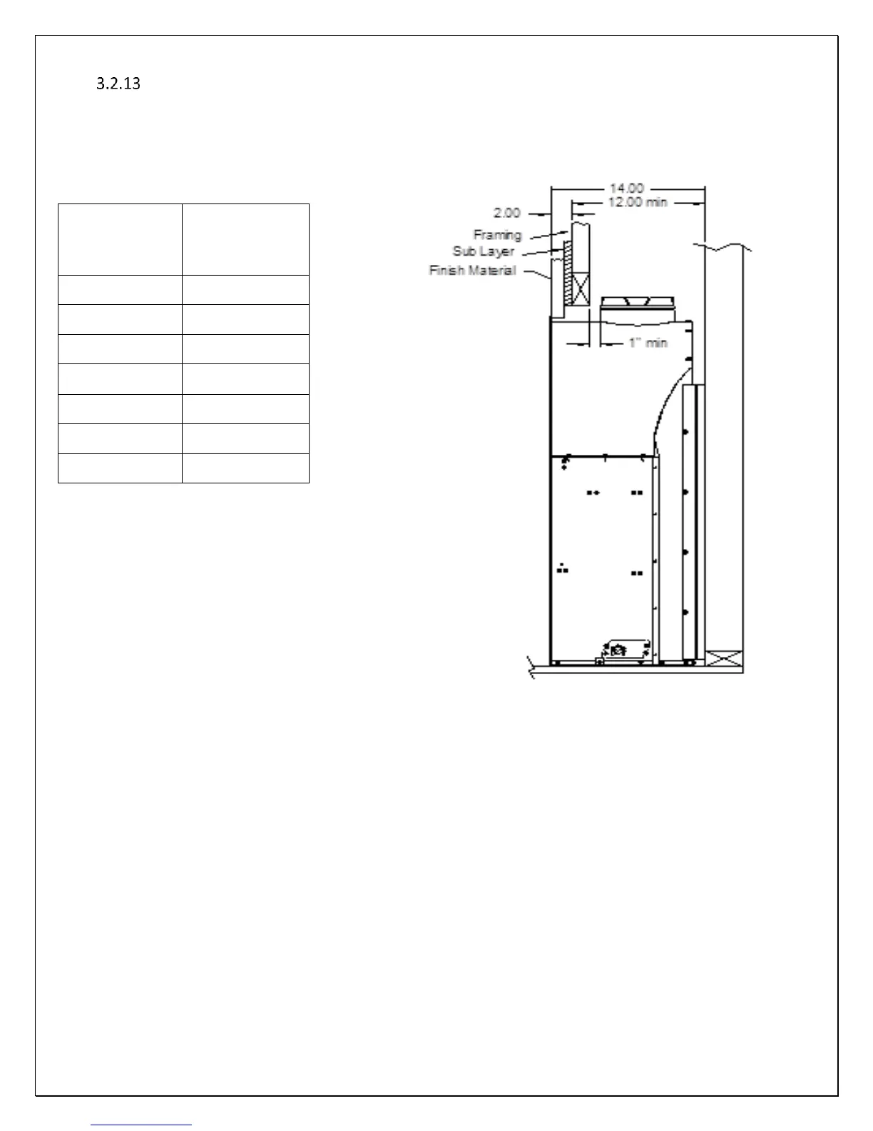 The nominal framing depth for this fireplace is 14 inches. except for a corner installation and for installations that use solid