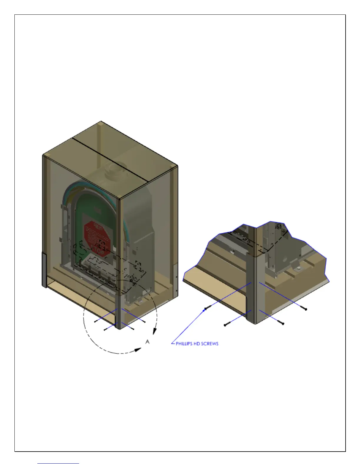 the outer box, identify and remove four Philips head drywall screws that secure a cardboard L pincher at the bottom of each