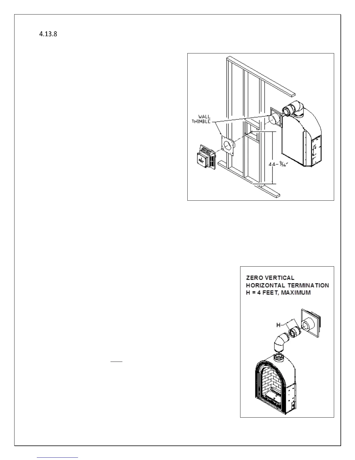 NOTE: Combustible wall thickness must be 4" to 8" maximum for wall thimble