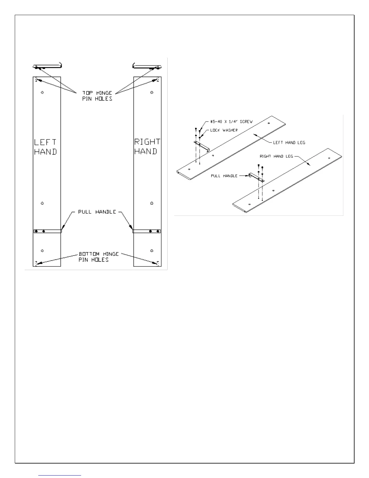 1. Positively identify the Left Hand and Right-Hand Surround Legs. The Pull Handle must be located in the bottom half of the