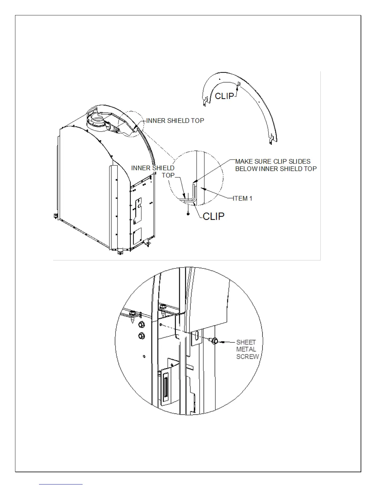 hole located in the INNER SHIELD TOP. Leave screw loose for adjustment.