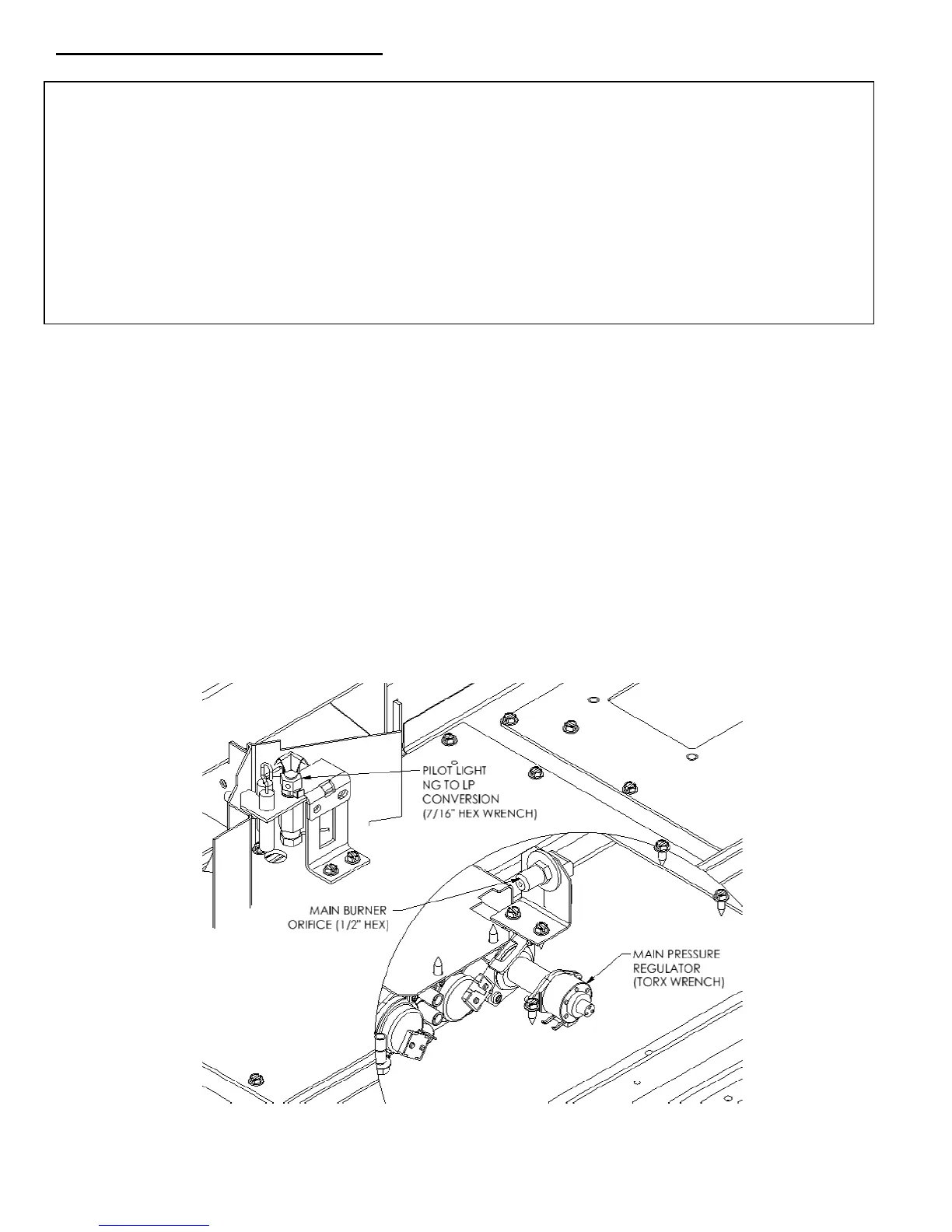 you convert this fireplace and its Pressure Regulator, Pilot Orifice Slider Tab and Burner Orifice prior to placing this fire-