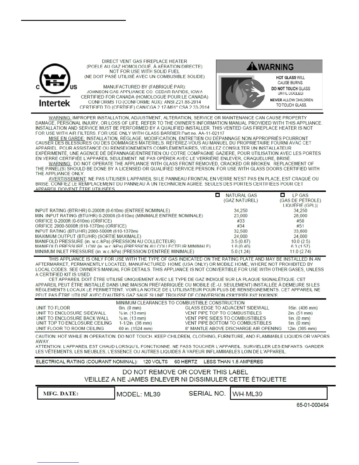 provide the Model Number, Serial Number and Manufactured Date. This information will expedite the warranty verification