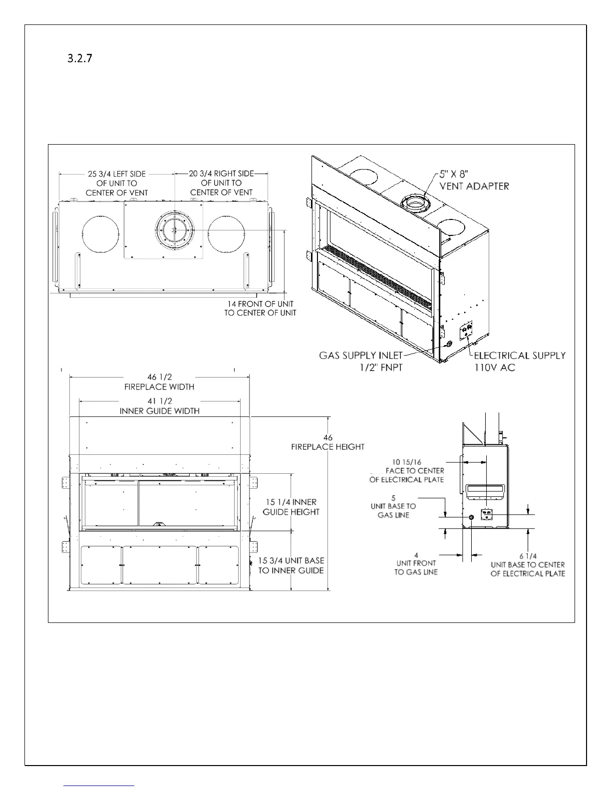 Figure 3-14 FIREPLACE DIMENSIONS AND FEATURES