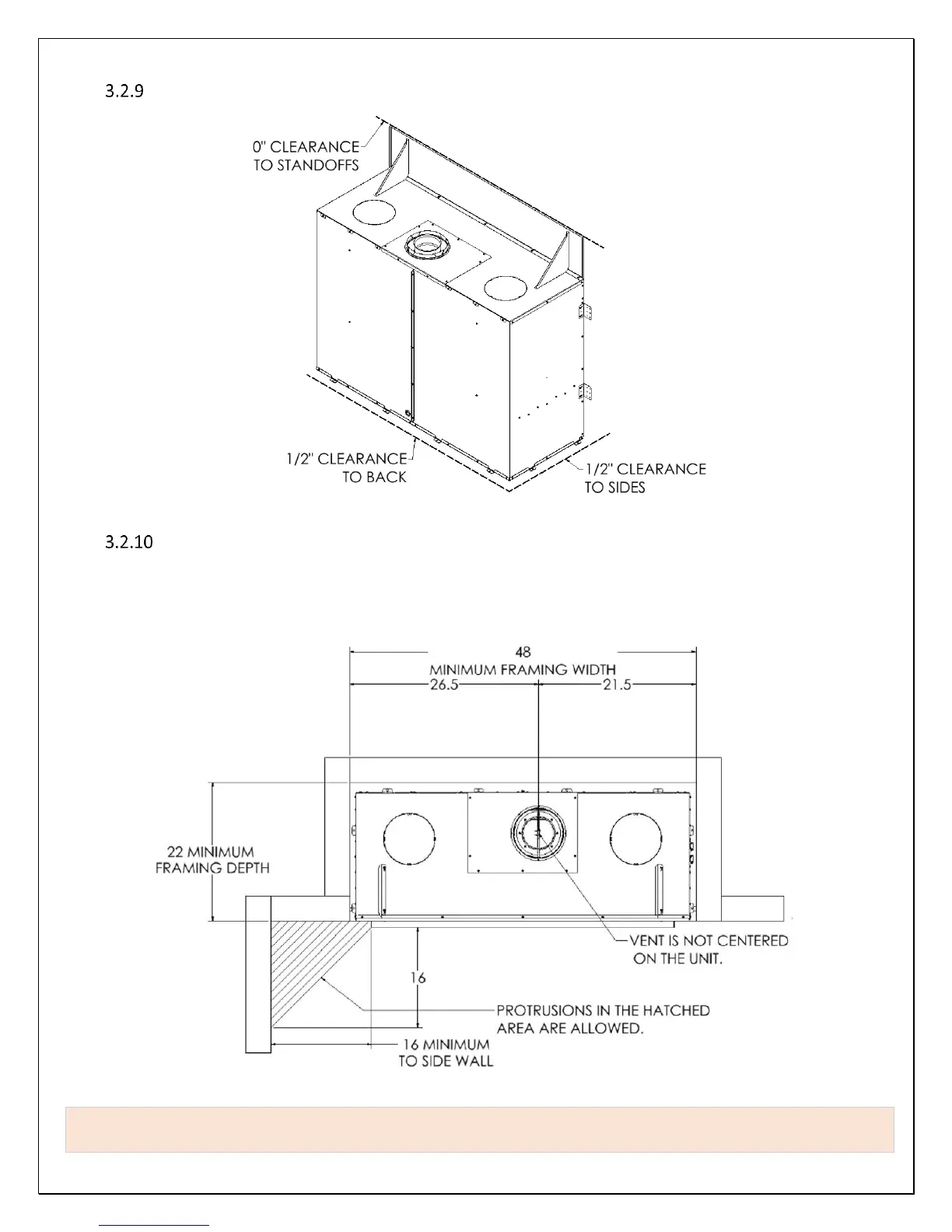WARNING: VENT IS NOT CENTERED ON THE UNIT!