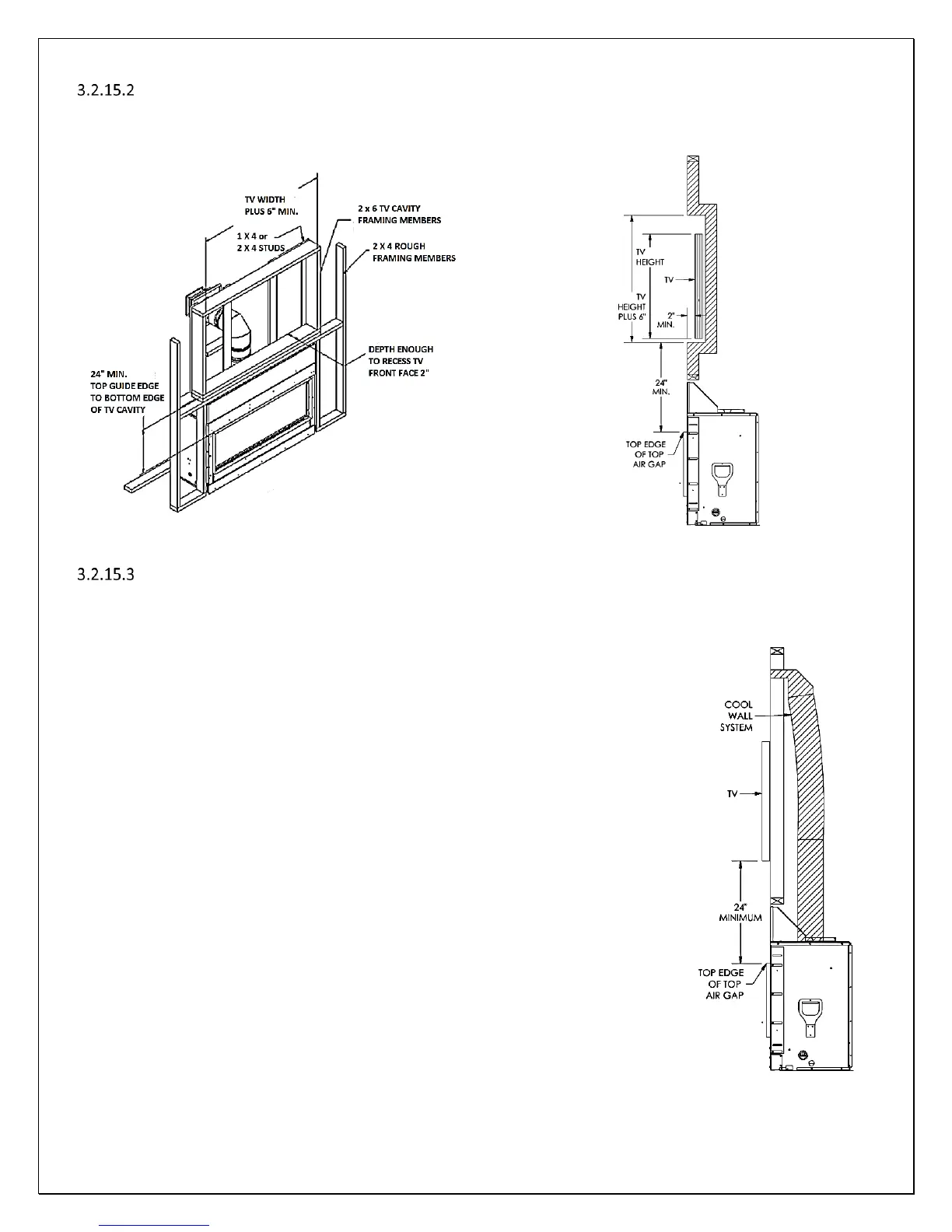cavity’s bottom surface must be a minimum of 24” above the top edge of the top air gap of this Fireplace.