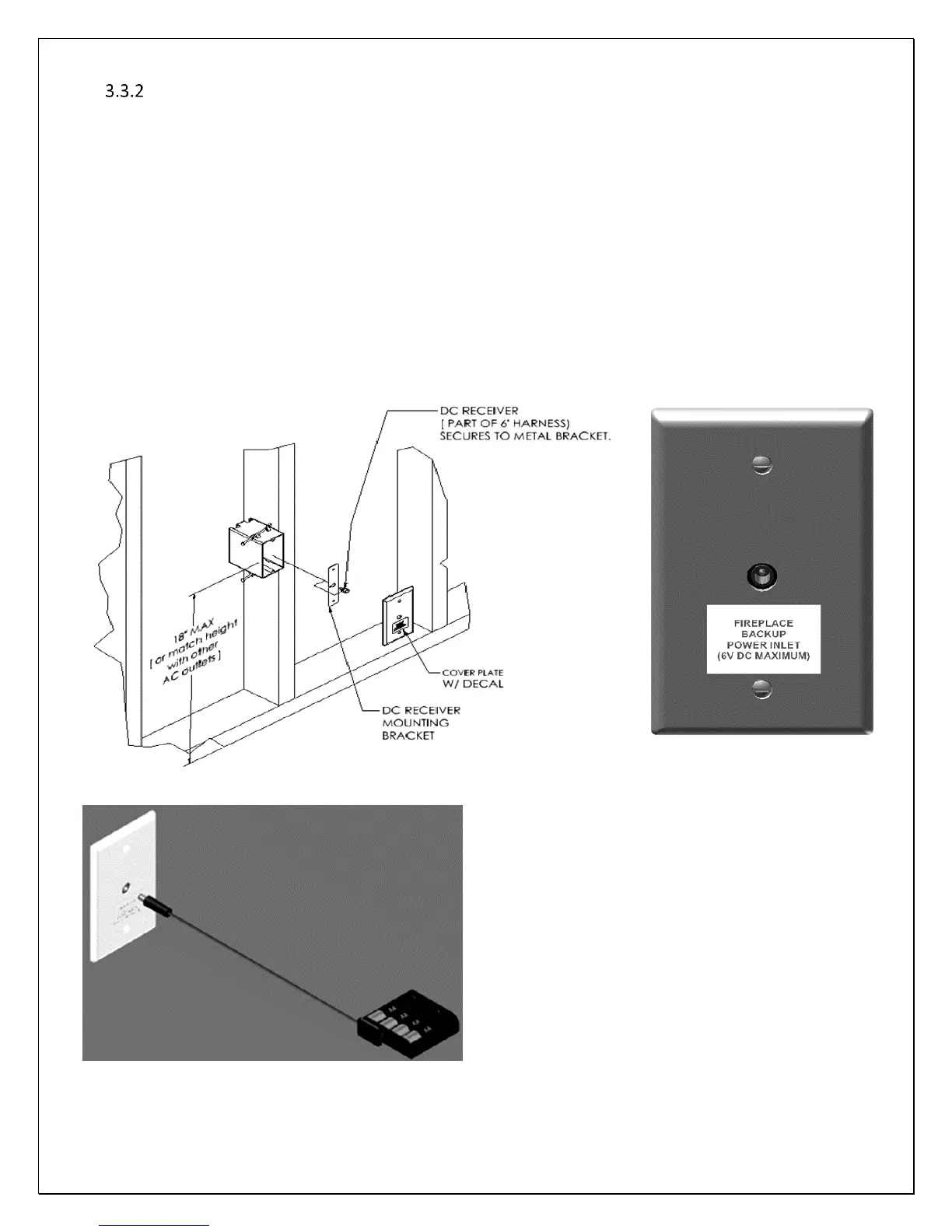 DECAL INSTALLATION: A notification decal (label) is supplied with this fireplace that aids in identifying the DC Power Inlet.