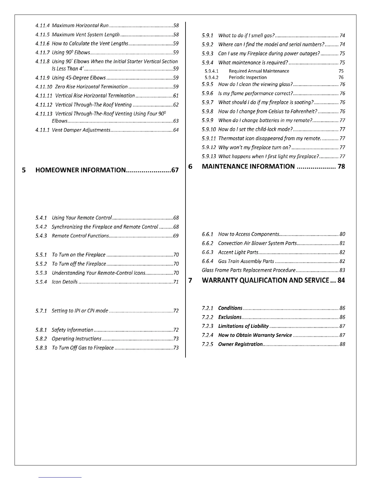 5.3 IMPORTANT INFORMATION FOR HOMEOWNER ............ 67