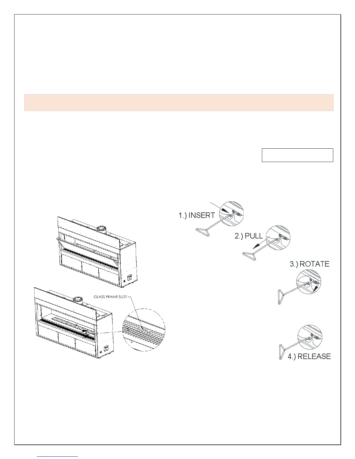 4. Use the tool provided to connect the spring latches to the glass frame. Fireplace tool into hole in spring latch, pull latch