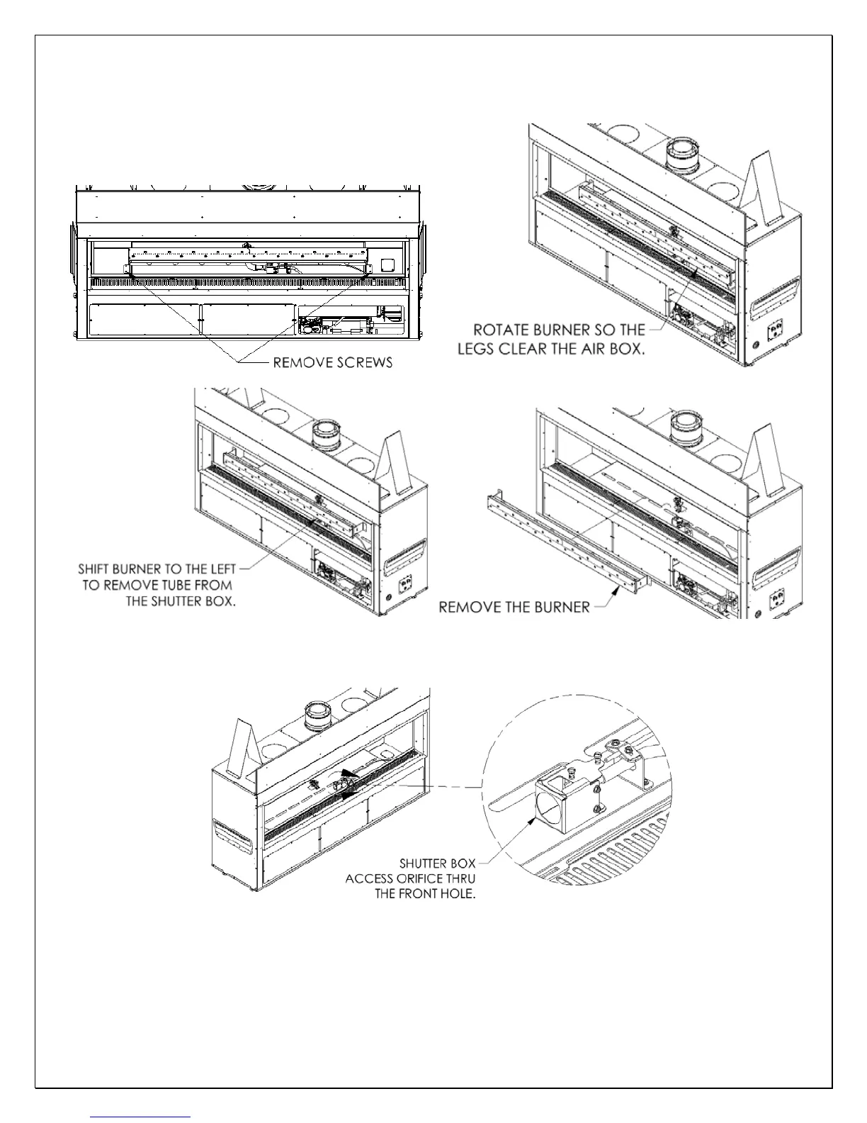 box. The burner will then be free and can be removed from the fireplace.