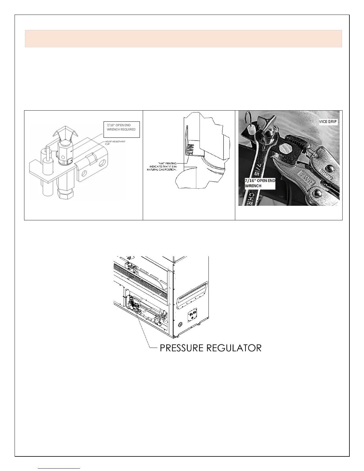 detail view, below. If you see “NAT” printing on the adjustment clip, this indicates that the pilot is set to burn natural gas. Push