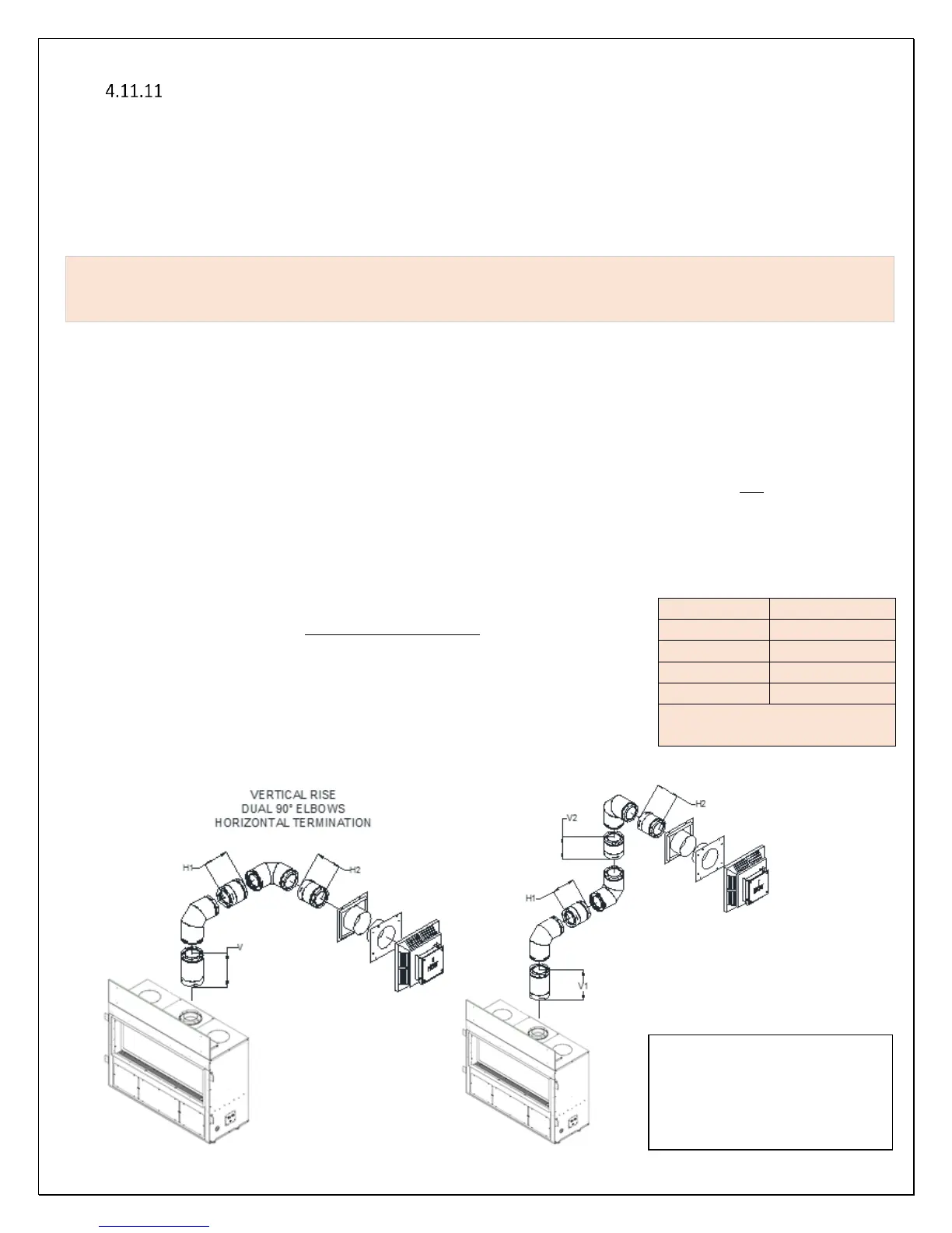 fireplace is between 4’ and 12’, you are allowed a maximum 32’ horizontal run. This fireplace provides a maximum flexibility in