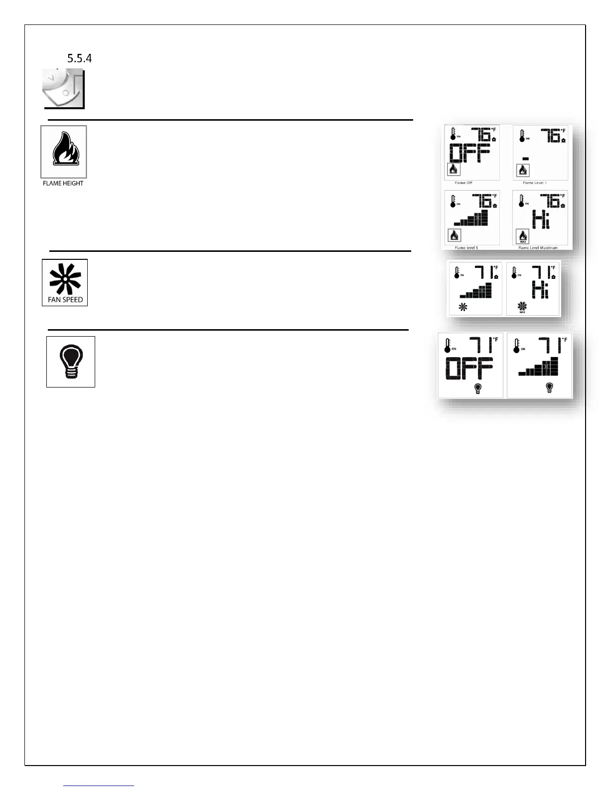 Note: If in Smart Thermostat, the flame height function is not available for manual