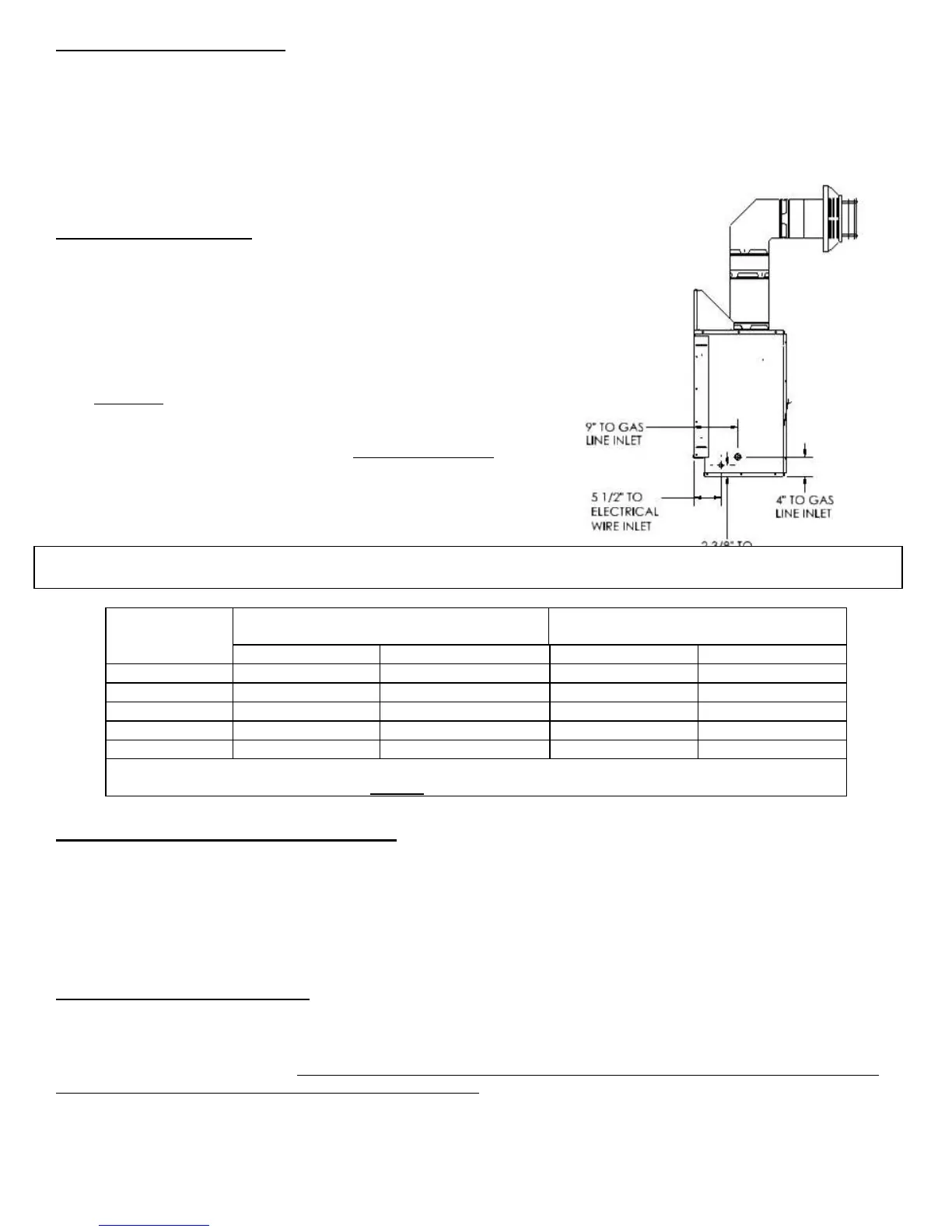 lator to the Fireplace. Refer to the following table for proper gas pipe di-