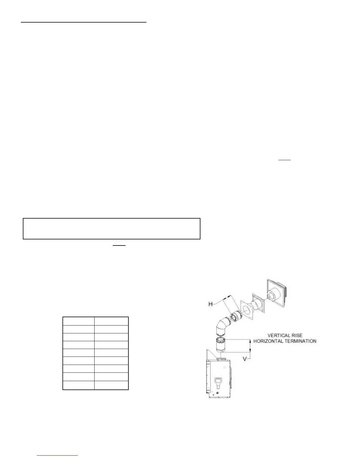 ft. of vent pipe. THERE MUST BE A MINIMUM OF 1" CLEARANCE TO COMBUSTIBLES FROM ALL VENT PIECES ON