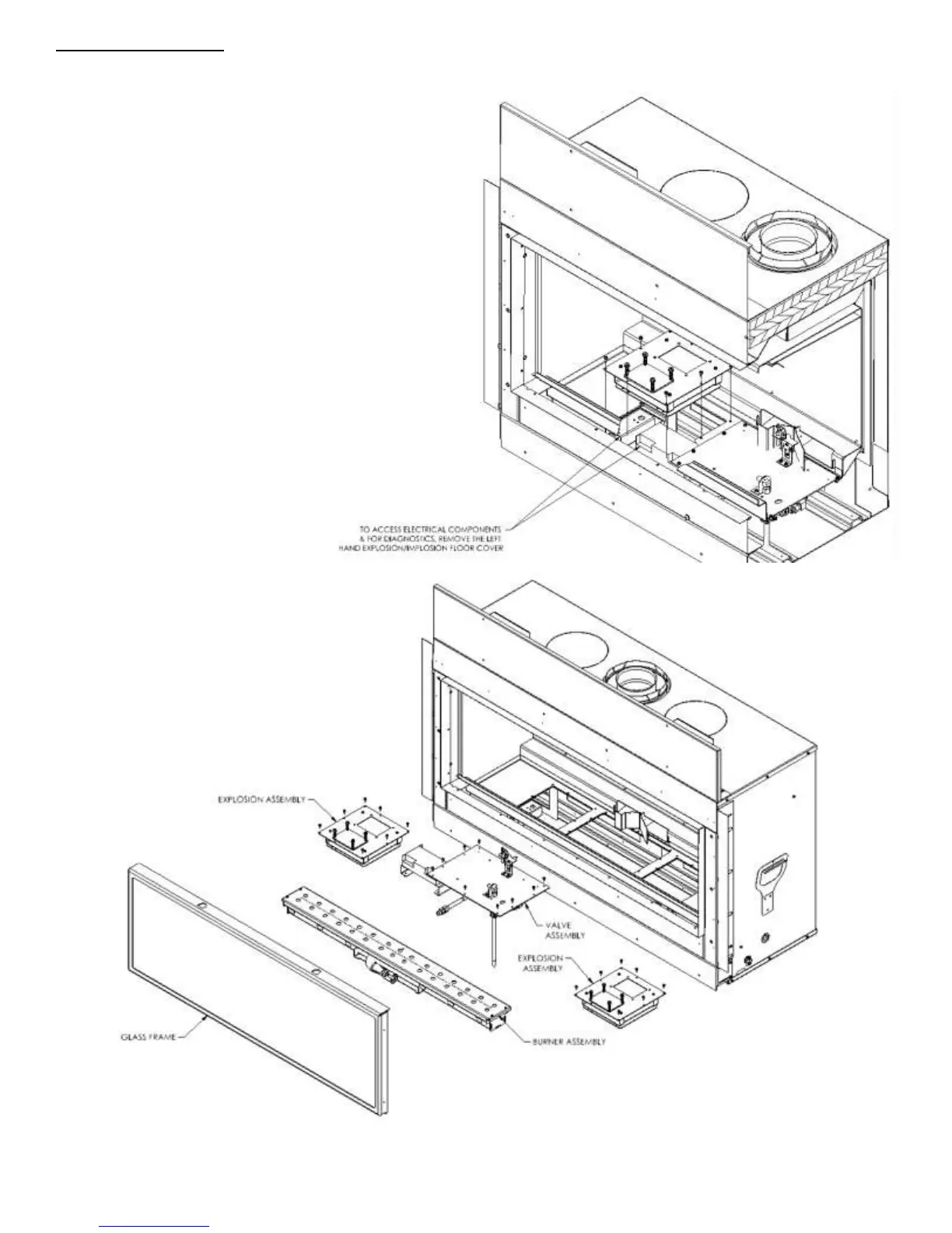 To access internal components for general service or maintenance requirements, remove any decorative front, remove