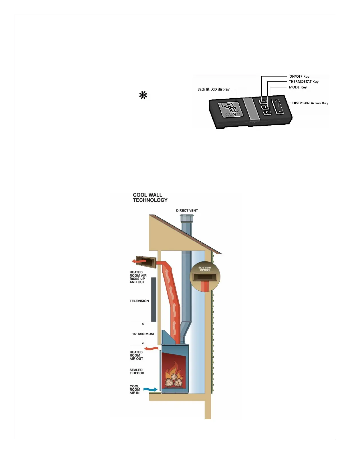 away from surrounding areas. Testing has shown that when using a Cool Wall system, temperatures above the fireplace are
