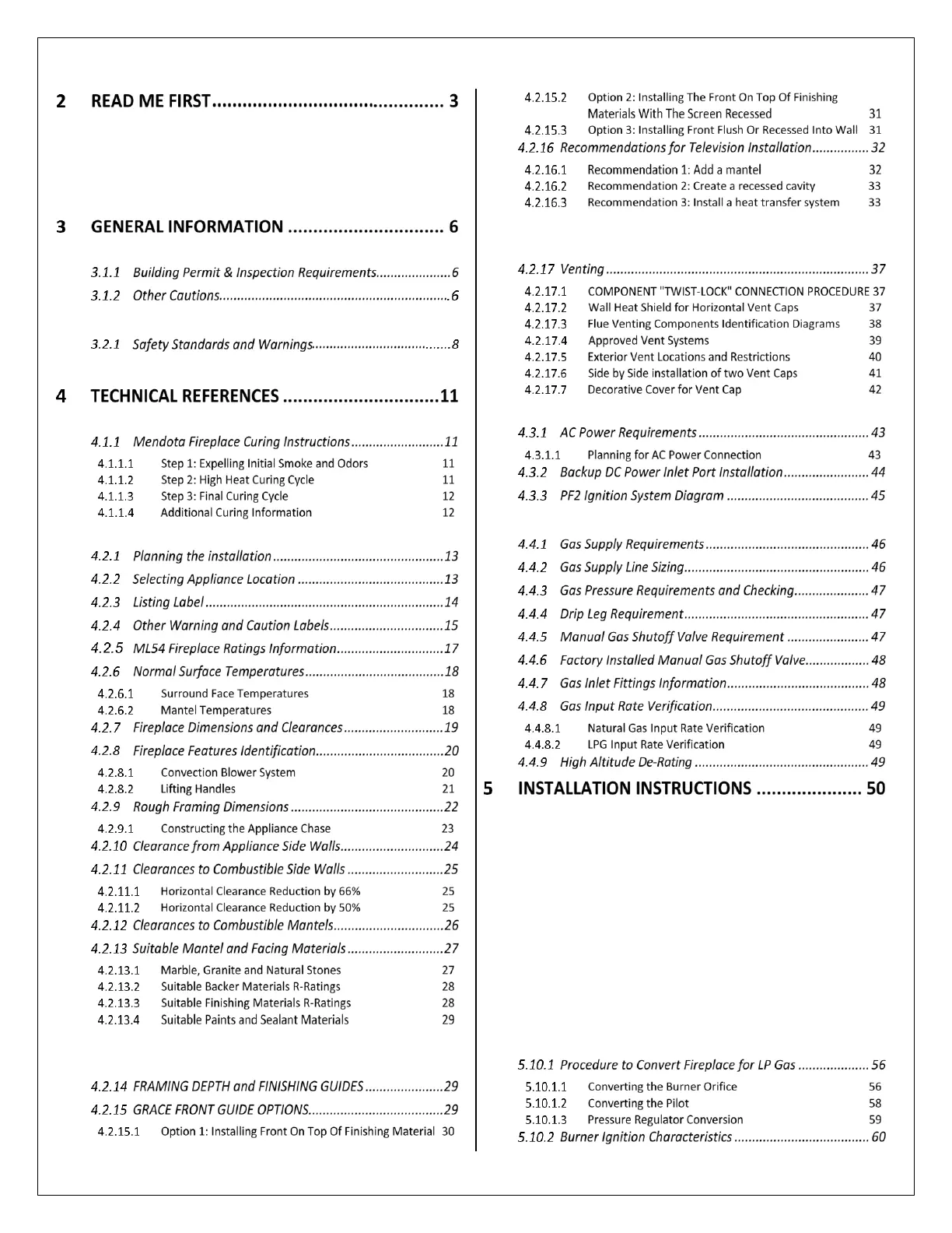 5.2 UNPACKING THE FIREPLACE ................................... 51