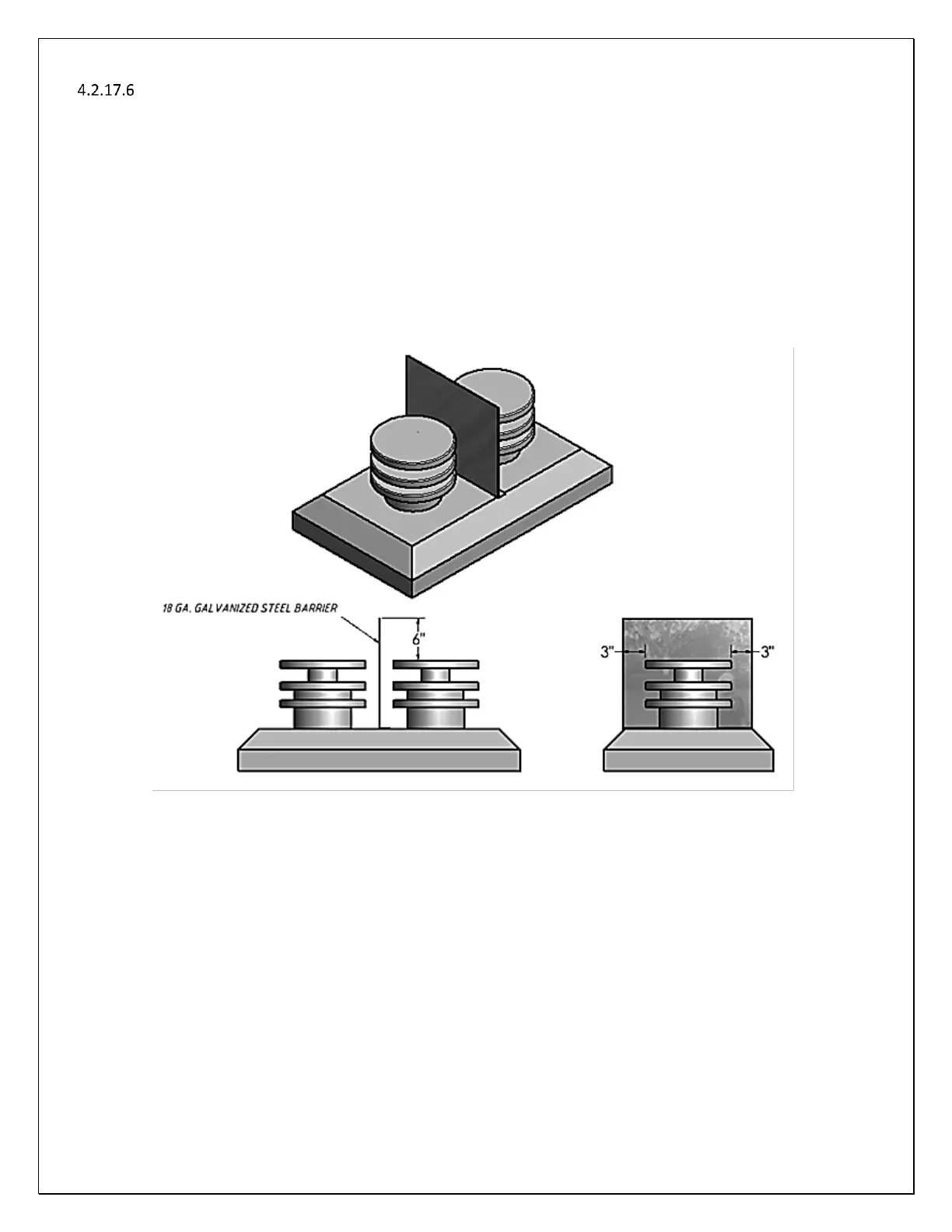 The galvanized steel barrier shall be 6" taller than the highest point of the vent caps and shall be 3" wider past the outer edges of