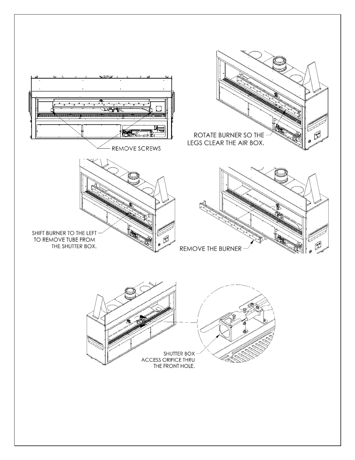 degrees to the front so that the burner legs clear the air box. Then slide the burner to the left to remove it from the air shutter