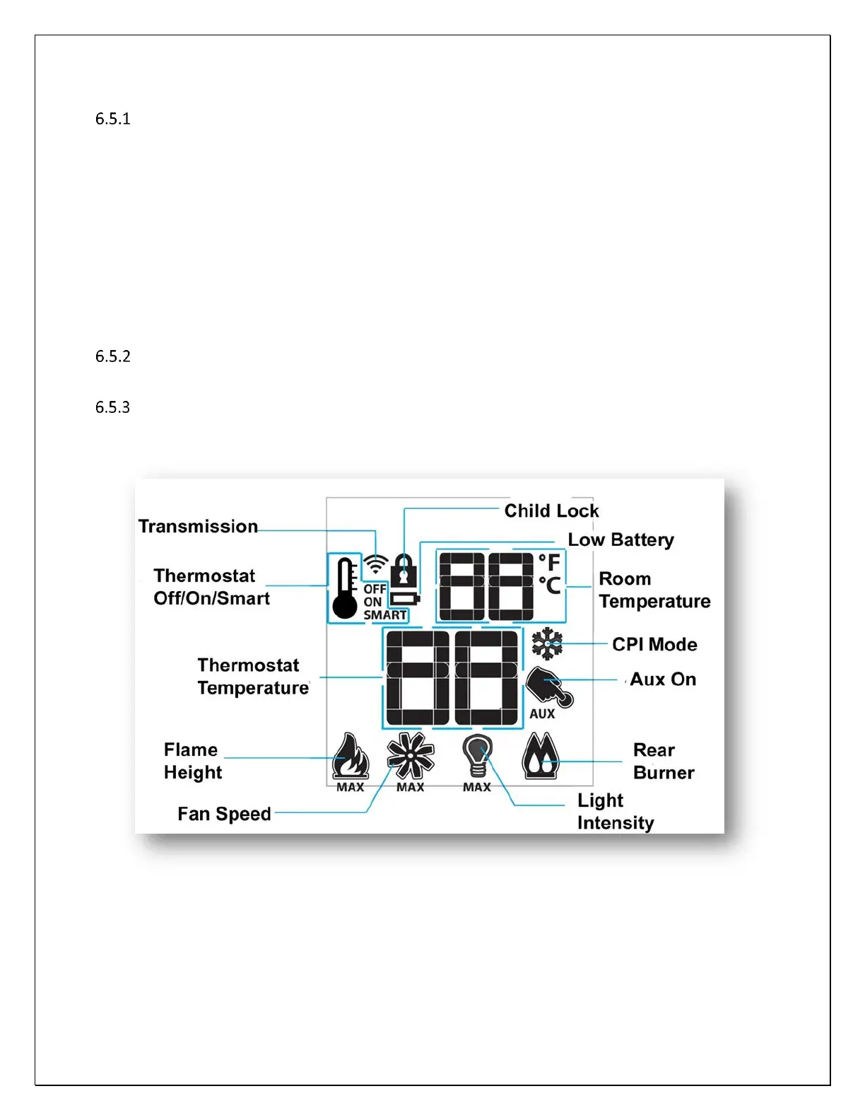Note: the “AUX On” and “Rear Burner” functions are not used in this fireplace.