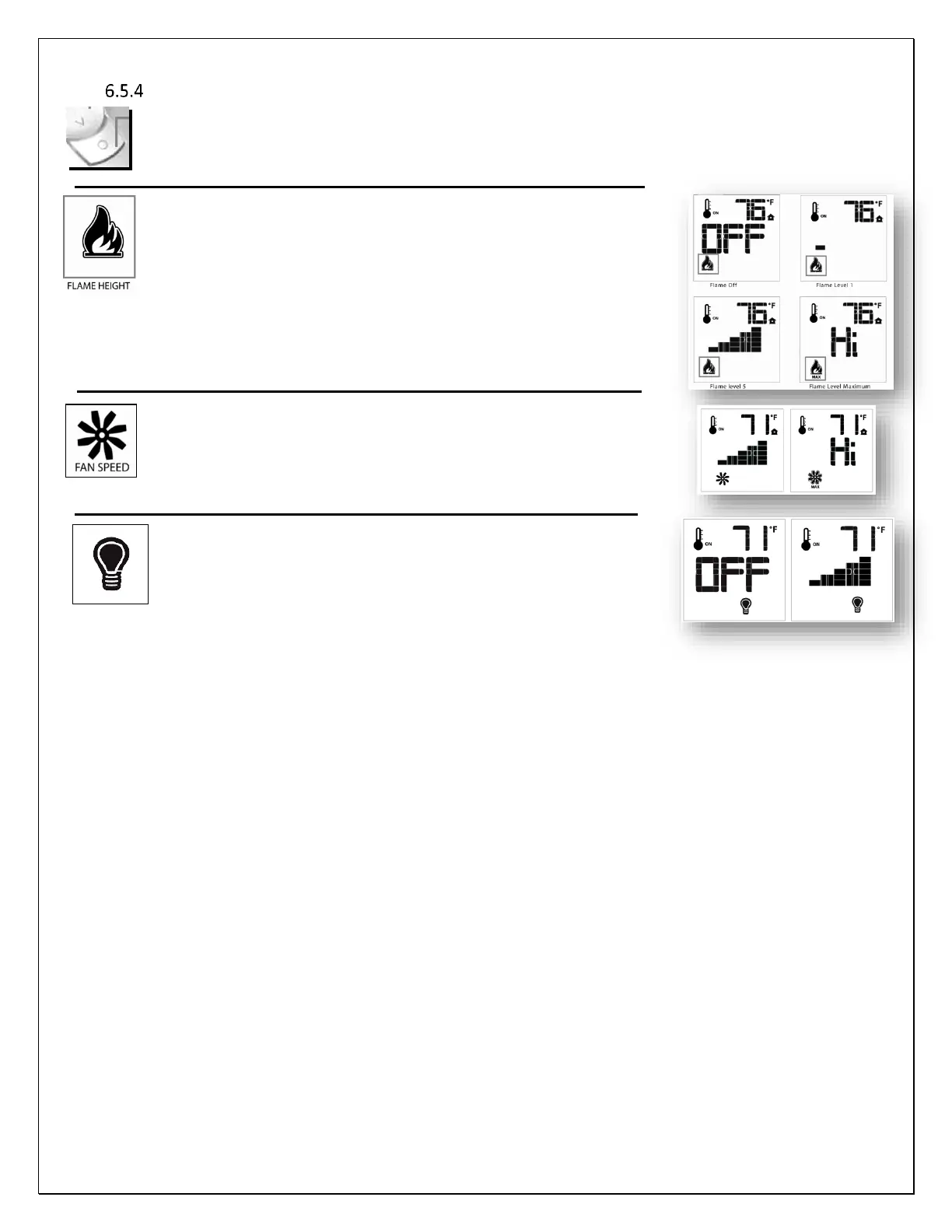 Note: If in Smart Thermostat, the flame height function is not available for manual