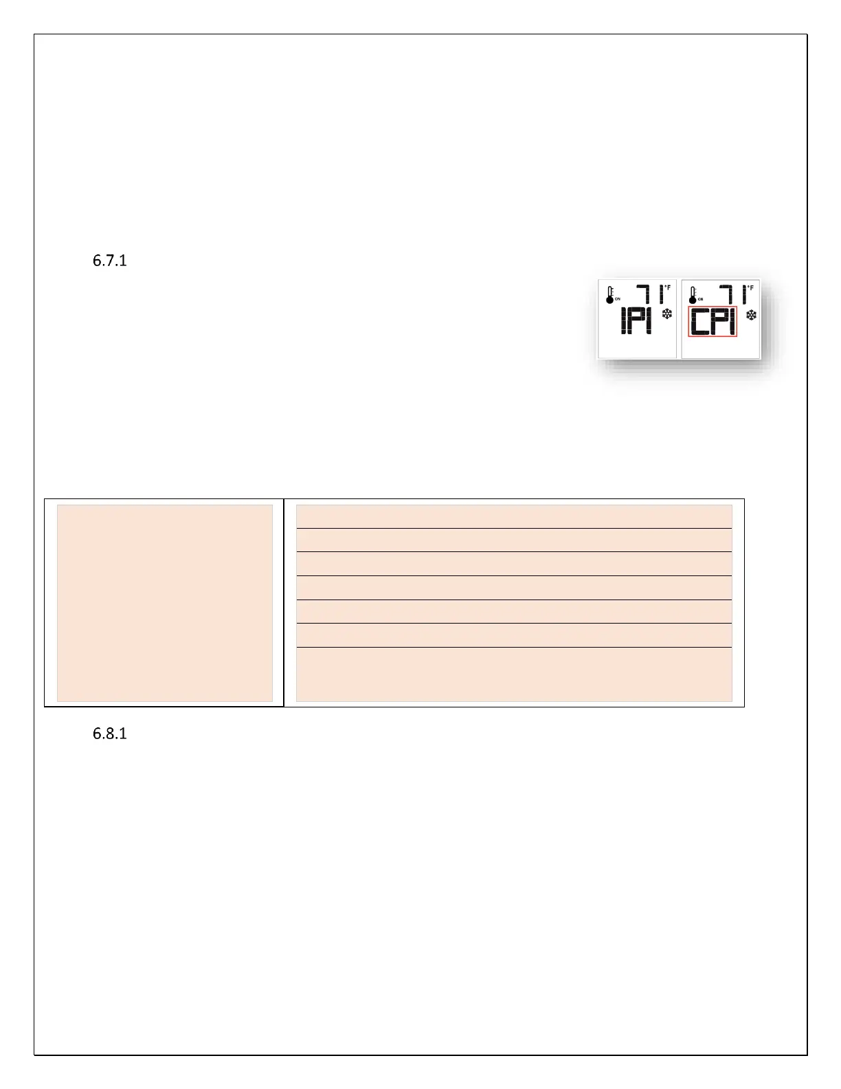 Note: The snowflake icon will be visible on the display at all times when in CPI mode.
